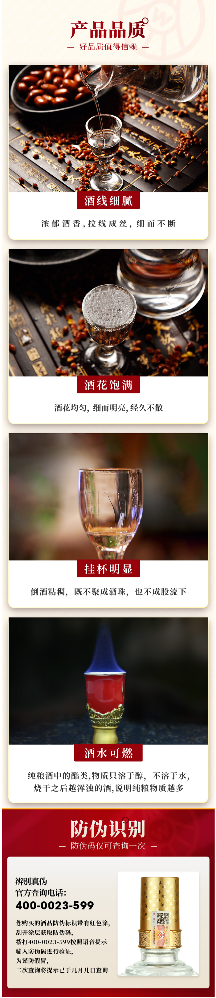 这款五粮液股份尊酒,是一款浓香型白酒,由四川宜宾五粮液股份有限公司出品,执行标准号:GB/T10781.1(一级),是用水、高粱、大米、糯米、小米和玉米酿造而成,酒质清澈,酒香气扑鼻,口感绵柔回甘不上头、不易醉、醒酒快,酒酒精度52%vol。