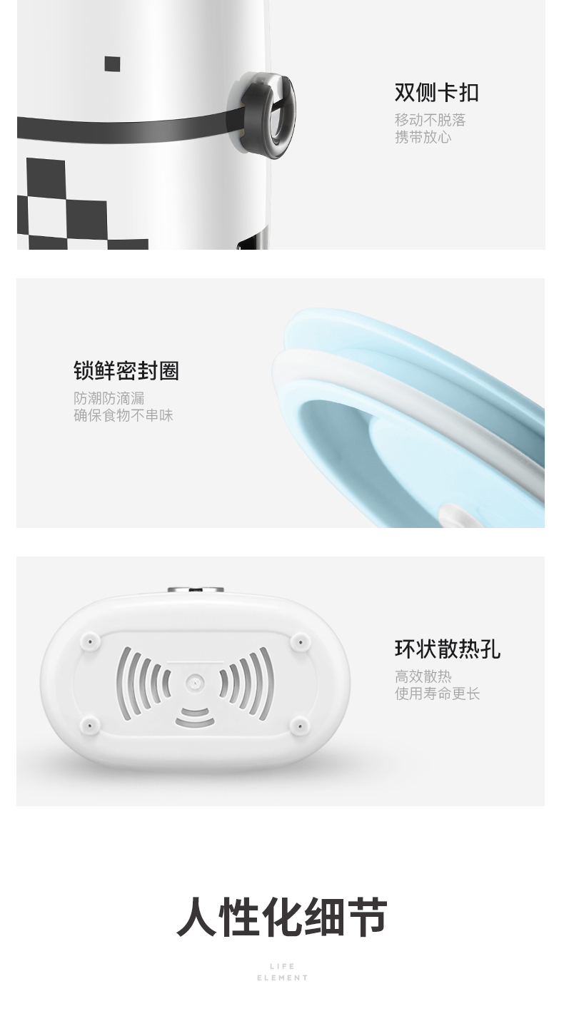 内胆精选婴儿材质的0.5L陶瓷双内胆,共有2只,经1200℃高温烧制,质地致密,天然健康,无异味,易清洗,更能锁住营养。采用蒸汽环流加热,更能锁住营养。密封圈是天然硅胶材质,防潮防漏。