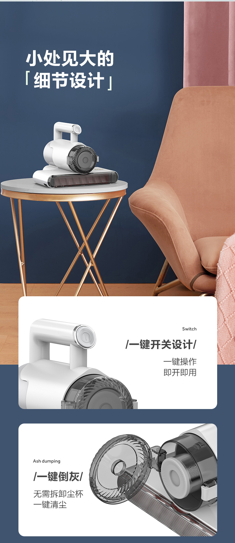这款除螨仪功能上可通过拍打+吸尘,深度去除被褥,沙发、毛绒玩具等在内的灰尘,皮屑、毛发等,可通过紫外线杀菌、深度除螨;通过50℃热风除湿,让被褥、衣物如同阳光晒过一样,有效解决灰尘、尘螨困扰,保护哮喘、鼻炎,过敏等敏感人群。是非常实用的家居电器。