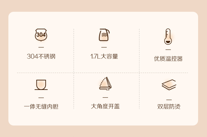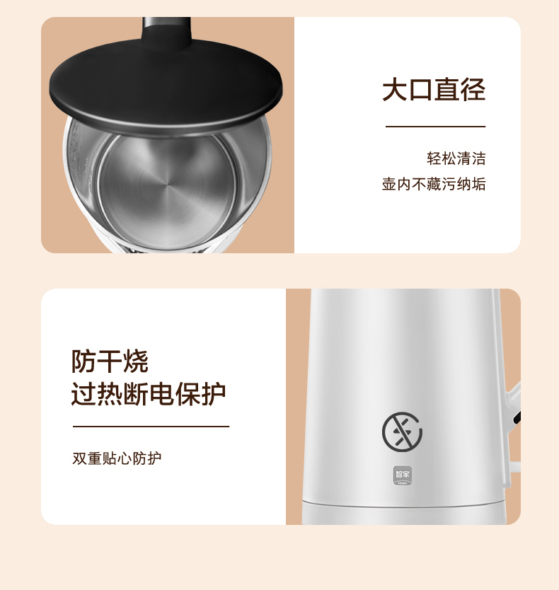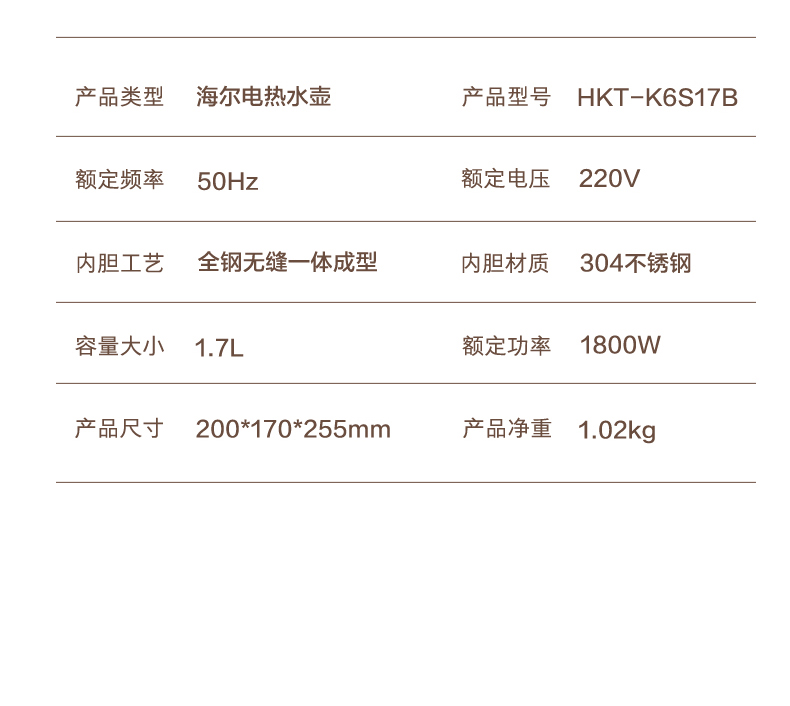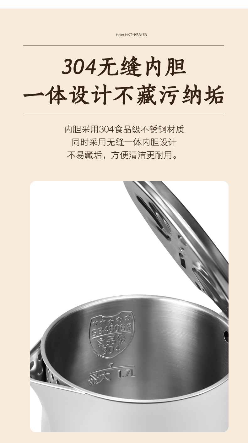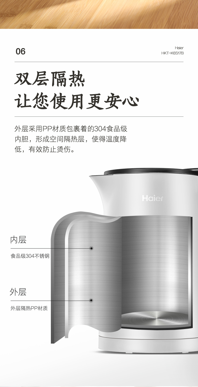 天猫海尔三丁客专卖店79元,下单立减10元,可领10元优惠券,实付59元到手,容量为1.7L,1800W快速加热,304不锈钢内胆,一体无缝设计,不易藏污纳垢,方便清洁更耐用;双层隔热防烫壶身,外层质感PP材质,保温隔热,安全防烫伤,优质控温器,准确控温,充分沸腾,全面杀菌,达到设定温度持久控温,让你畅享健康水。