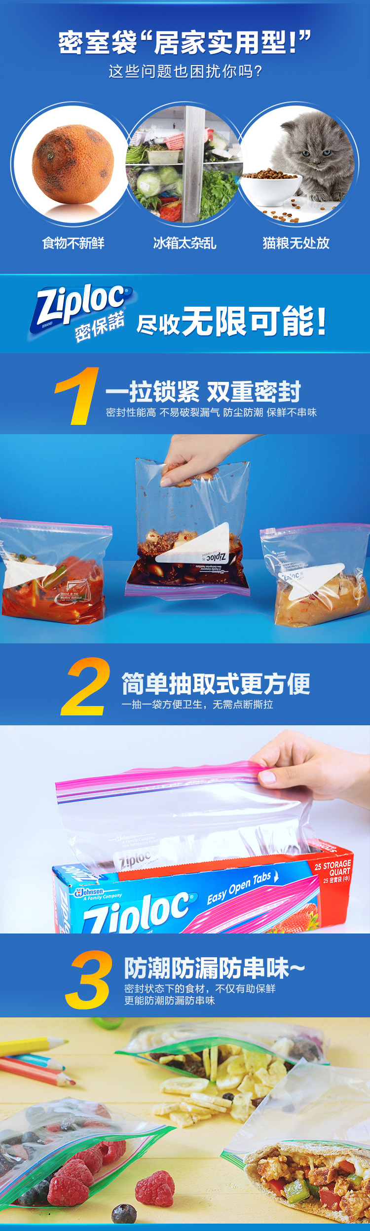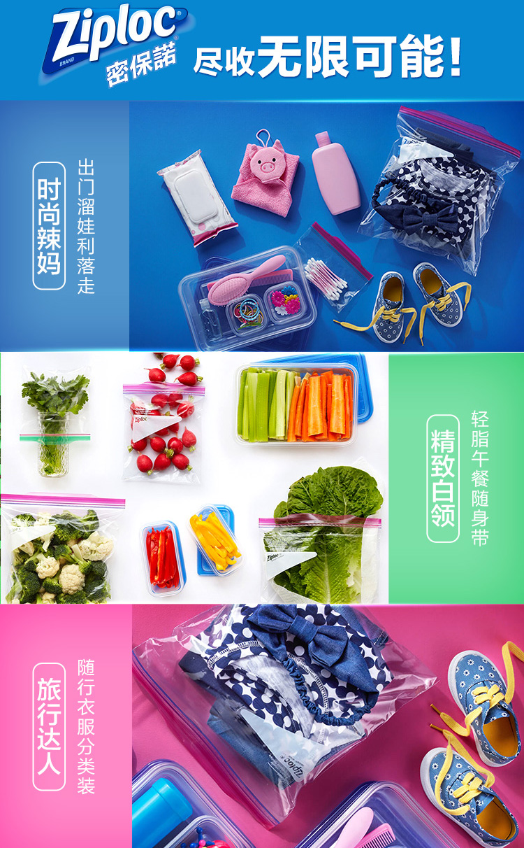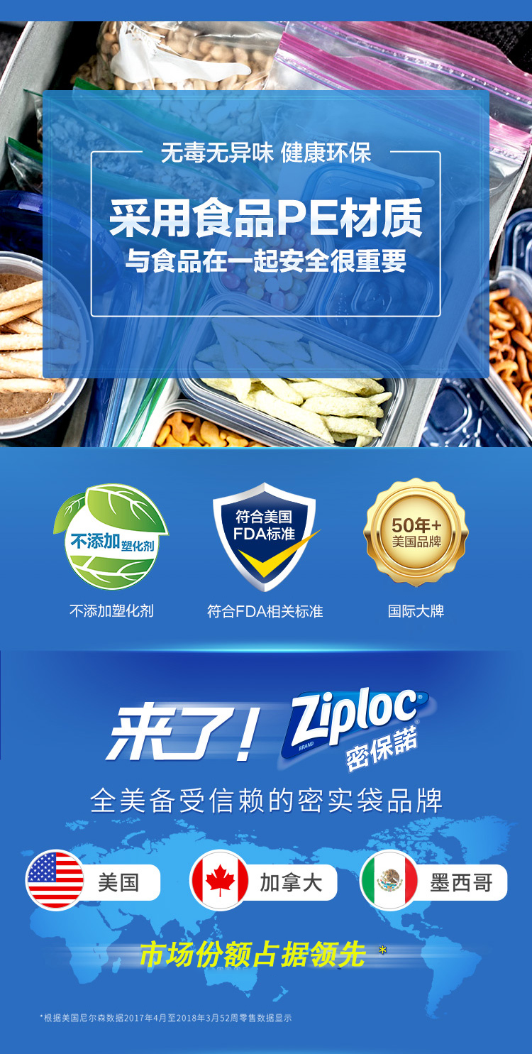 美国市场销量第一。结实超耐用,小编用了好几盒,袋子比一般的保鲜袋更加厚实。原装进口,符合FDA相关标准,一拉锁紧,双重密封,无毒无味,健康环保,可以重复使用。
