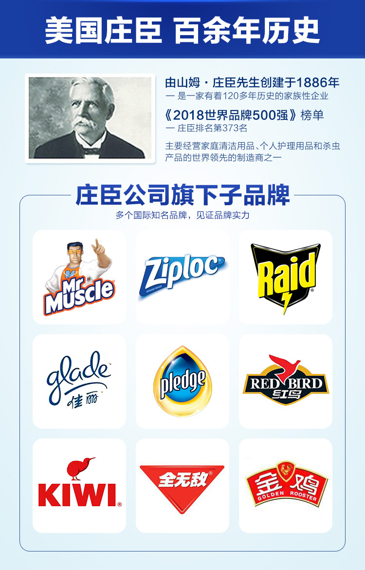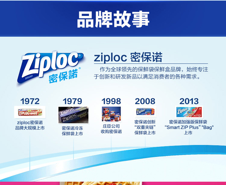 Ziploc密保诺和雷达、威猛先生等家庭清洁用品品牌,同属于120多年历史美国庄臣父子公司旗下。