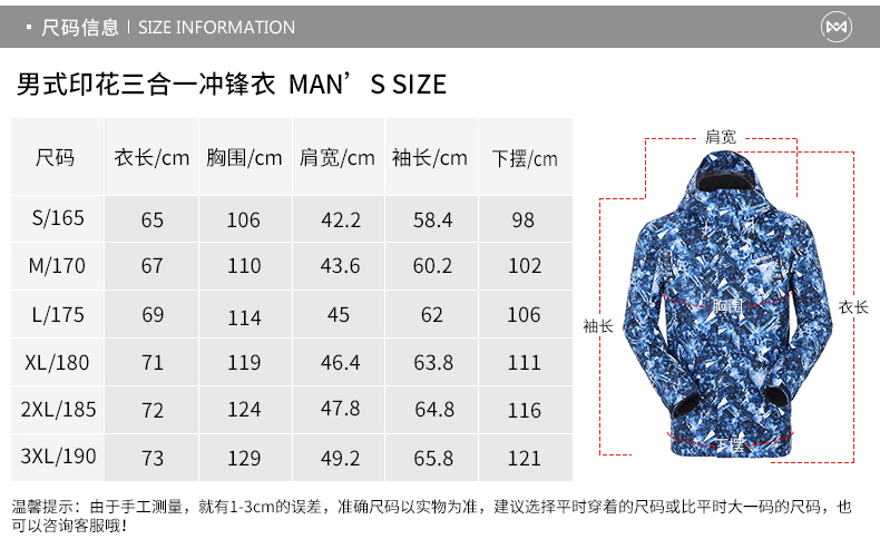 所谓的三合一也叫两件套冲锋衣,其实是两件衣服,外层是具有防风防水功能的冲锋衣,带三合一系统,里面多出来一套拉链,可以和里层的抓绒(或棉服、羽绒服)拉在一起,这样能当成一件穿,同时具有(单穿内胆、单穿外层、两件一起穿)三种穿法。