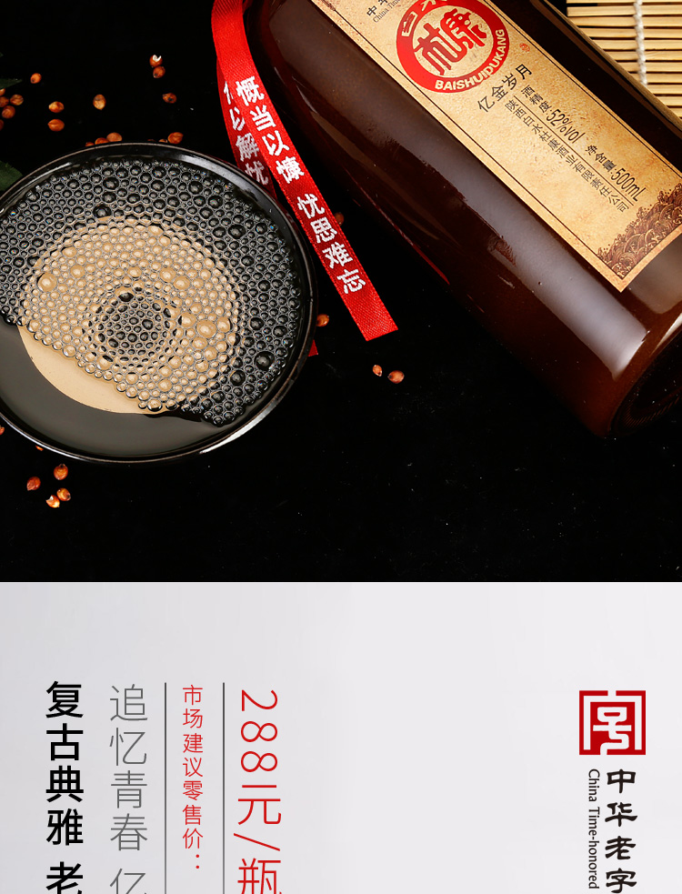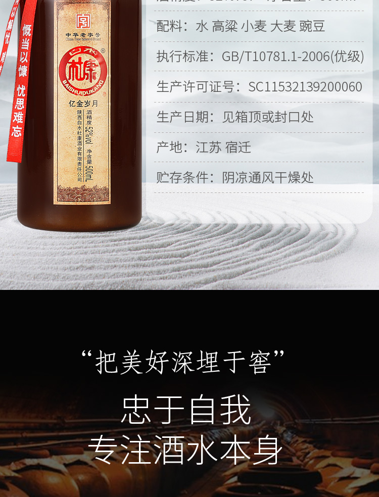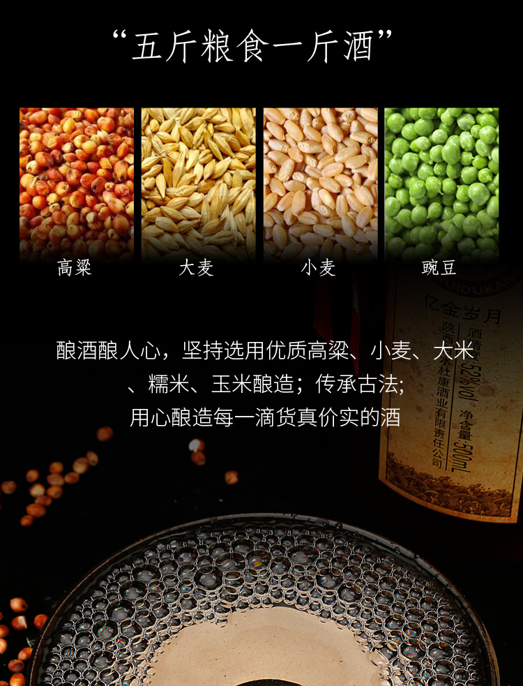 甄选用优质高粱、大麦、小麦、豌豆多种粮食为原料,遵循古法固态发酵,经过至少5年窖藏,酒质柔和,酒花饱满,入口爽净,好喝不上头。规格: 500ml*6瓶