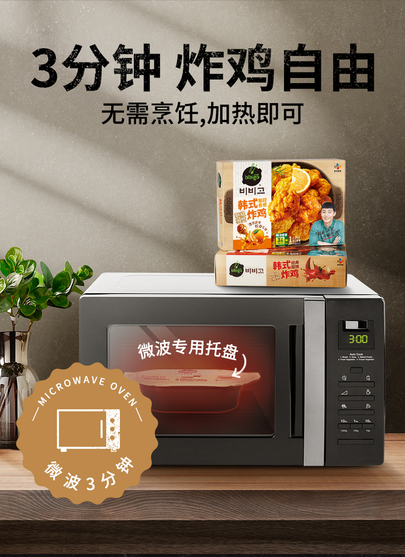 这款必品阁bibigo 韩式微波炸鸡,选用大块原切鸡胸肉,口感鲜嫩,经过细心腌制,地道韩式风味,食用时只需微波3分钟即可,肉香四溢。