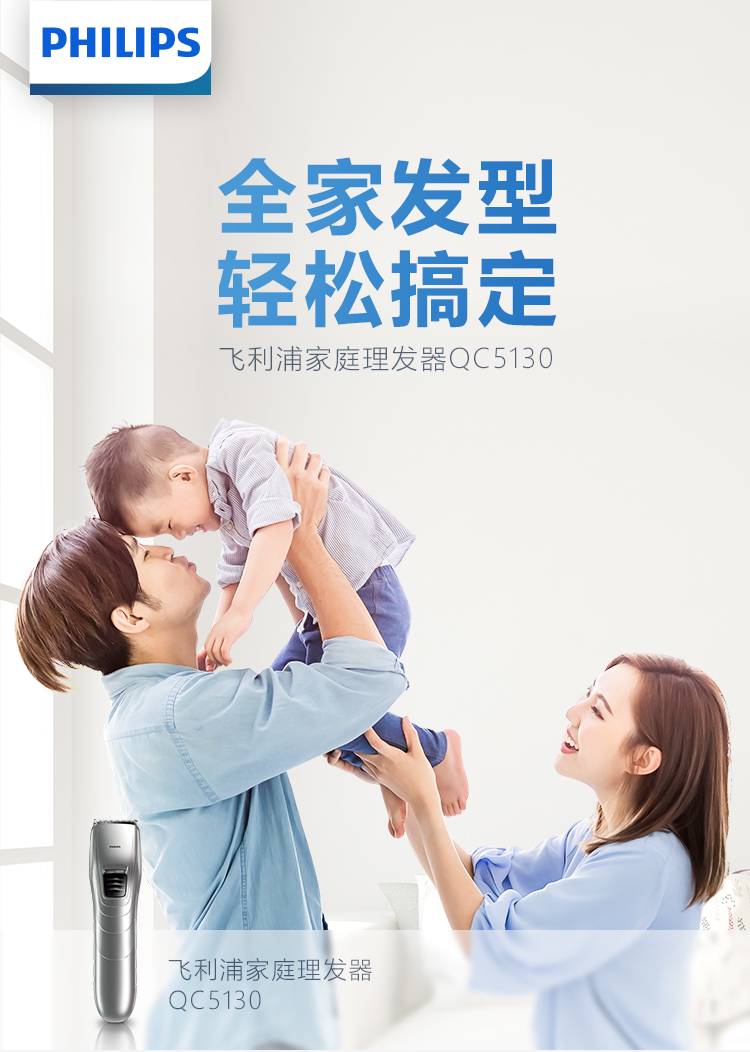 飞利浦入门级电动理发器QC5130,满足你自己在家理发的愿望,尤其适合父母给孩子理发,或者想自己打理头发的短发用户。