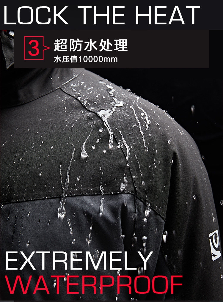 Amurcamp这款三合一棉服,外层10000mm水压、15000mm透湿的防水冲锋衣,防水拉链,接缝全压胶防水处理,防水效果优秀,超出大多数冲锋衣的5000-8000mm水压。里层是棉服内胆,填充120克仿丝棉,保暖效果优于抓绒。