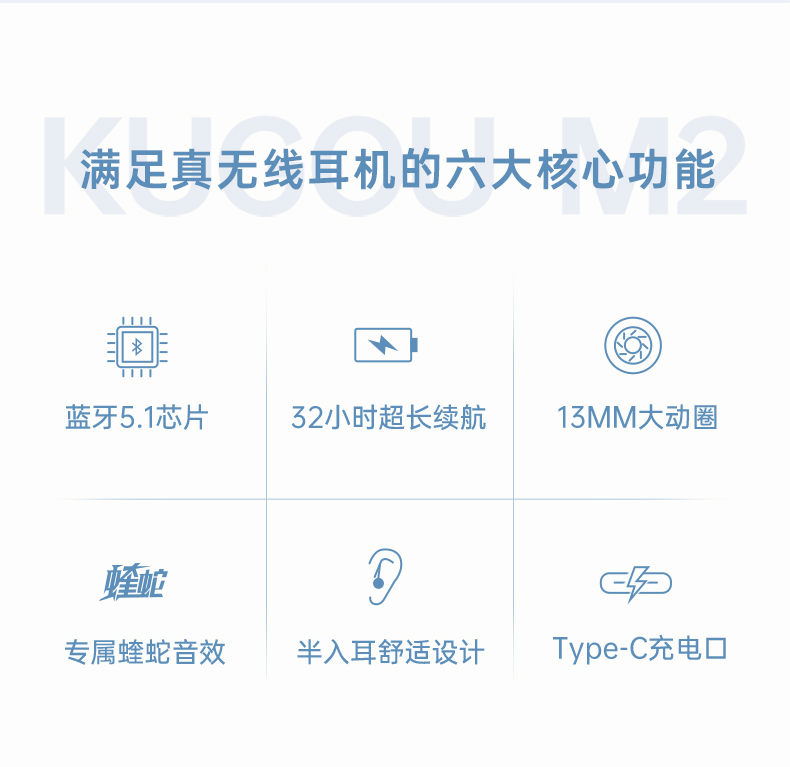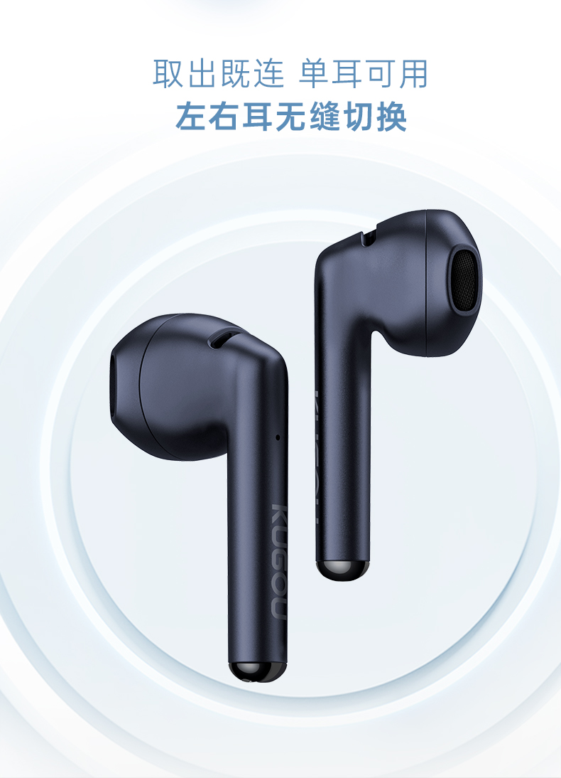 这款酷狗的蓝牙耳机使用蓝牙5.1芯片,连接快速、稳定。使用13mm动圈单元+N50高性能钕铁硼的组合,音质纯净无杂音、低音清晰有力,搭配酷狗定制的蝰蛇音效,带来沉浸式的音质享受。