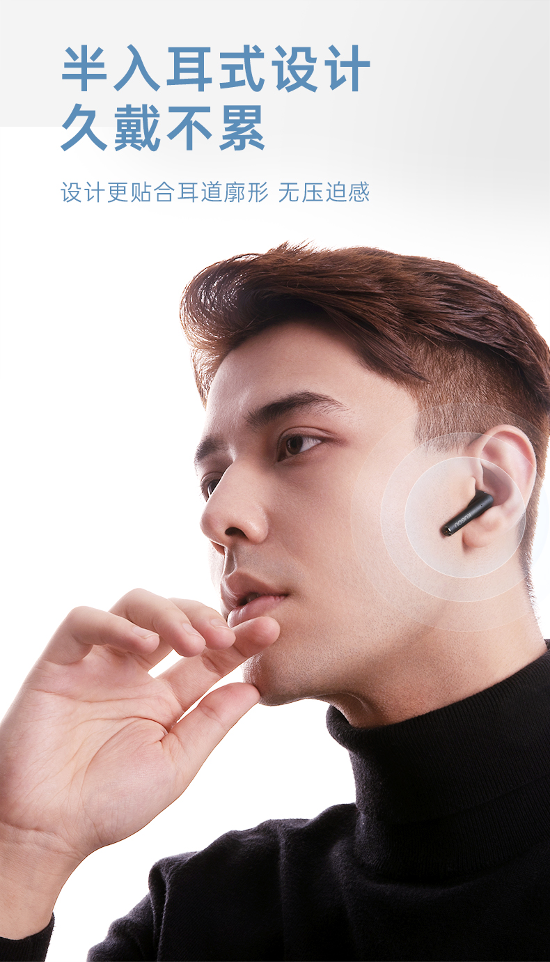 耳机符合人体工学的半入耳式,能更好的贴合耳廓,不挤压更稳固,跑步、旅途也能安心佩戴,单耳机续航长达7.5小时,搭配充电仓的续航长达32小时,充满电只需要1.5小时,使用超省心。