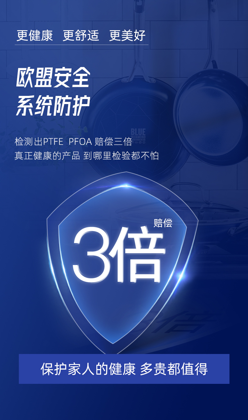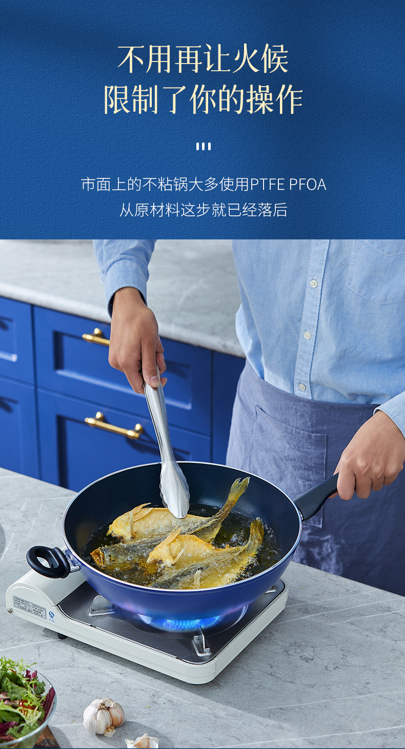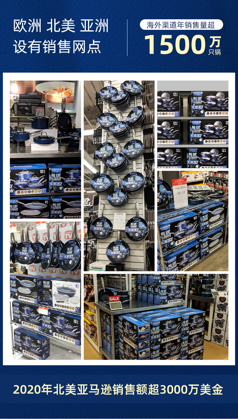 这款蓝钻Bluediamond 不粘陶瓷炒锅,使用第六口进口陶瓷专利技术,在陶瓷中加入了钻石成分,使得整体坚硬度提高了5倍,持久耐用。