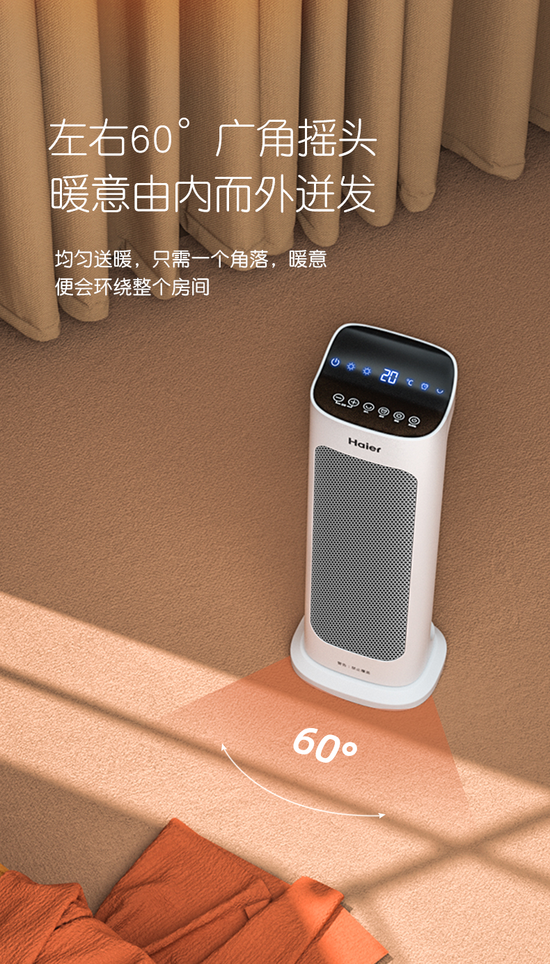 天猫haier海尔唯途专卖店219元,可领50元优惠券,实付169元到手,第1款(机械款)此价。2000瓦大功率,利用热空气从底部上升,冷空气下降的原里,形成对流,带动全屋升温,左右60度广角摇头,制暖迅速,范围广泛,具有倾倒自动断电等安全防护。