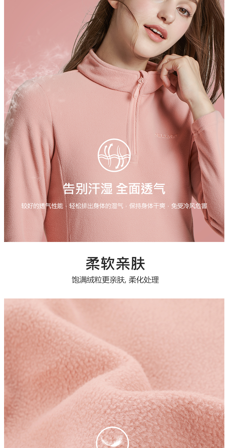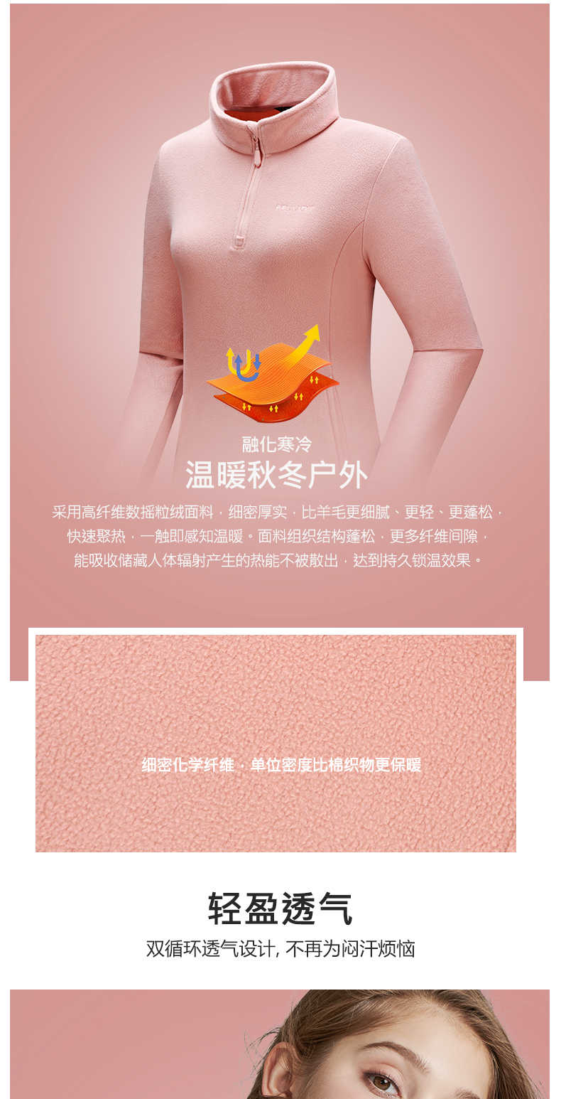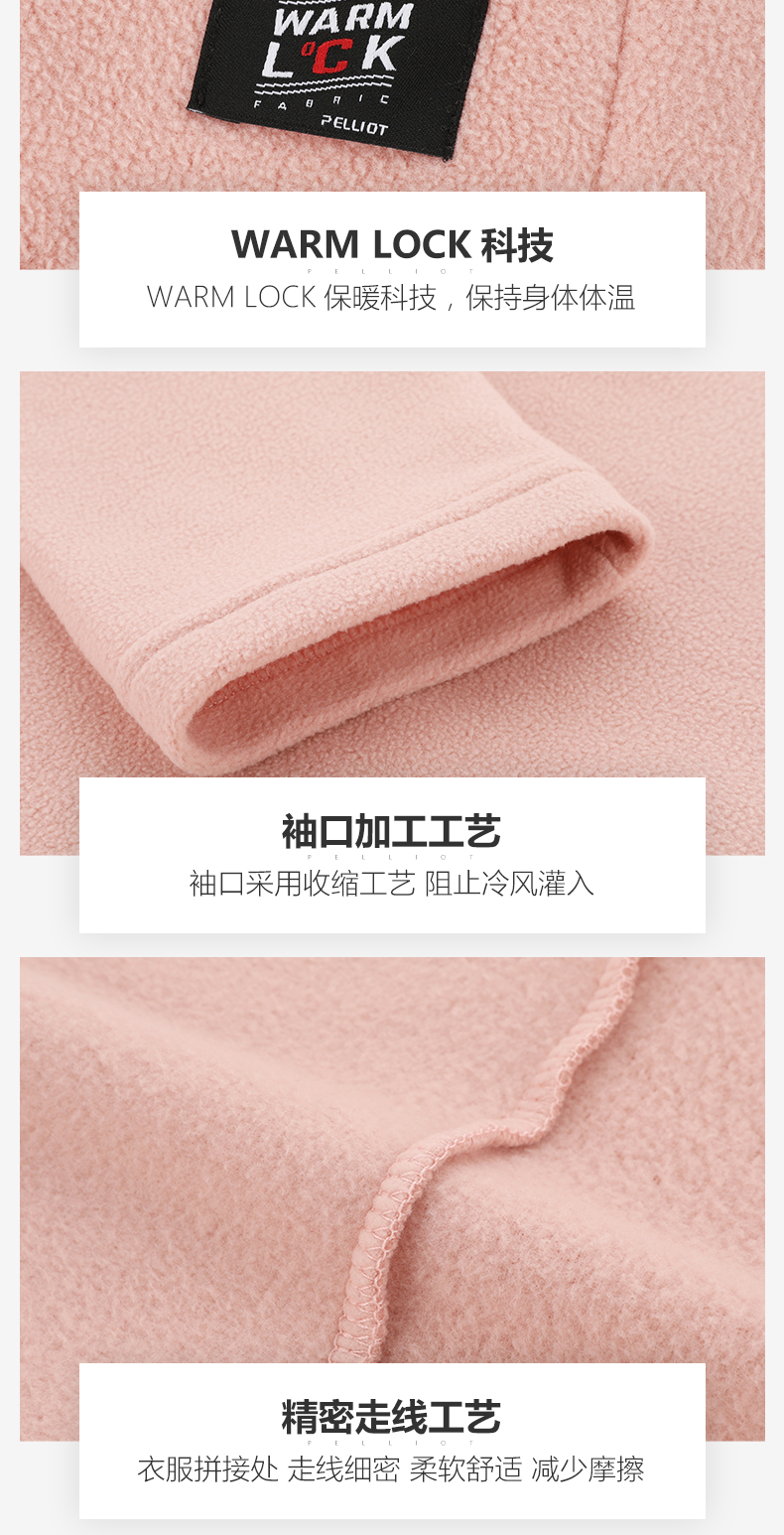 此款抓绒衣,200g加厚复合摇粒绒面料,分为内、外两层,内里为双刷摇粒绒,质地柔软与羊绒相似,加入了WORMLOCK恒温科技,特殊工艺处理,组织结构蓬松,锁温能力更好。