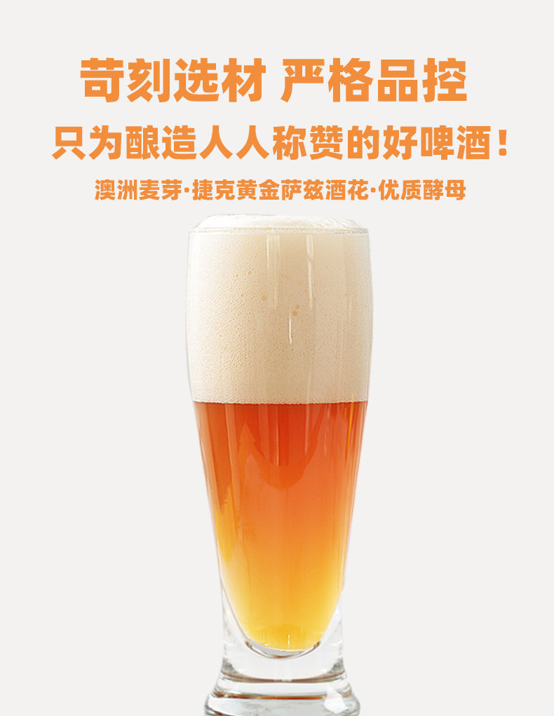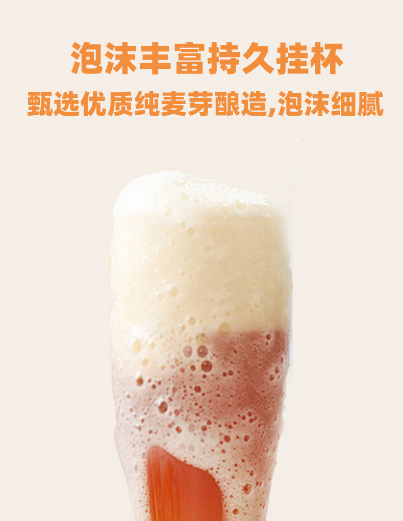 未经过滤保留了对人体有益的活性酵素,喝完也不头疼。使用双滴氮气罐装技术,真空填充,排空罐中的空气,确保啤酒的新鲜度。