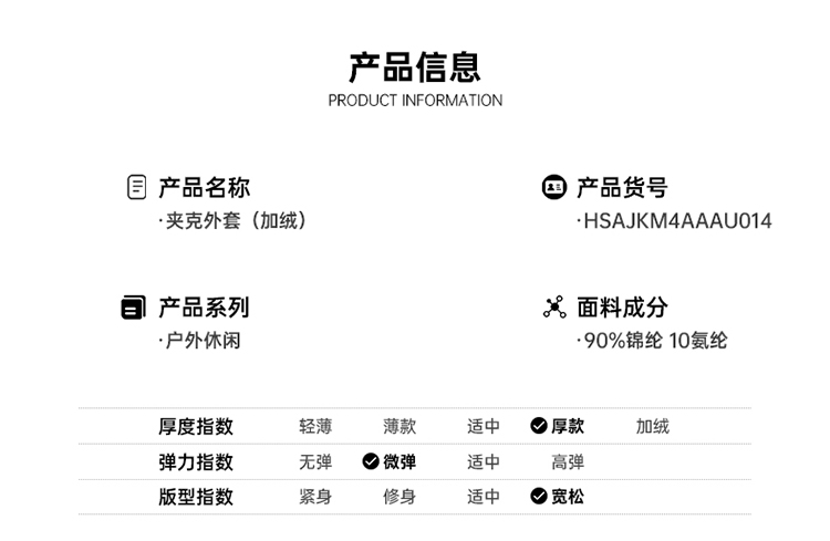 海澜之家这款是防风保暖夹克,使用近两年流行的复合面料,外层的是90%尼龙混10%氨纶弹力纤维,带弹力的高密度防风面料,防风的同时也防泼水;里面是非常后的抓绒,保暖效果好,里外两层结构紧密交织在一起。