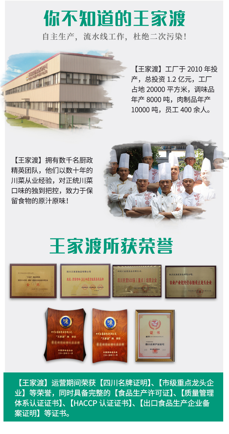 四川王家渡食品有限公司系眉州东坡餐饮集团全资子公司「官网」,成立于2010年,注册资金4500万,生产加工车间按照美国食品药品管理局(USDA)和日本农林水产省的要求设计,采用全封闭恒温控制,符合出口标准。