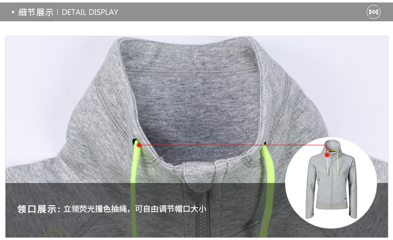 在款式上,棒球领/抽绳立领,黑色彩膜装饰加固口袋,袖口和下摆都是罗纹针织,防止倒灌风,适合运动或日常休闲时穿。