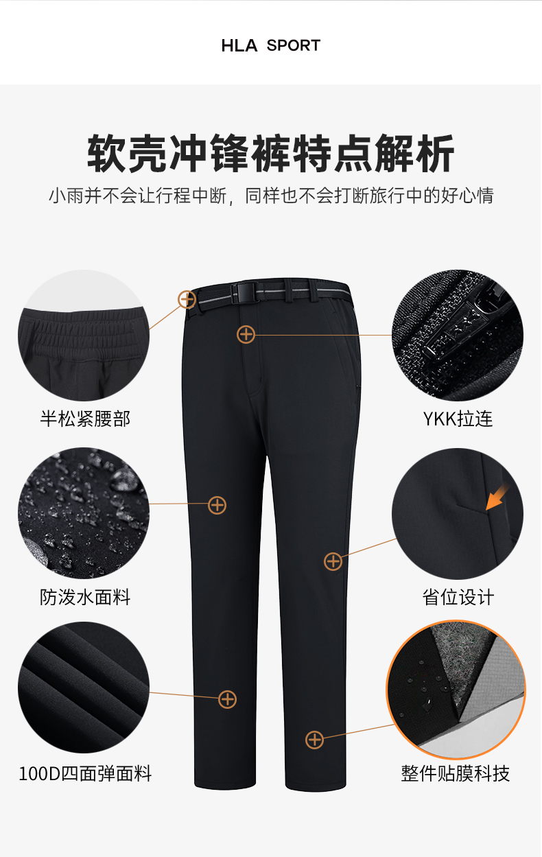 面料方面:海澜之家这款软壳裤是外层是100D厚度、92%聚酯混8%氨纶面料,面料耐磨好、防泼水、带有适度的弹力;裤子里层带薄绒。层面料和里面抓绒层之间,带有防风贴膜,防风效果好,能有效避免风寒效应。