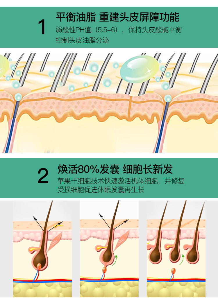 激活发囊细胞,苹果干细胞技术促进80%发囊细胞在生,唤醒休眠状态毛囊,孕育新毛发;