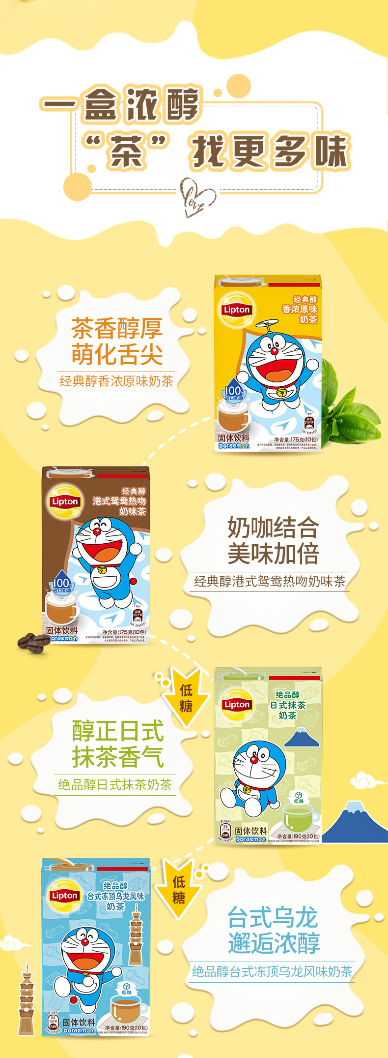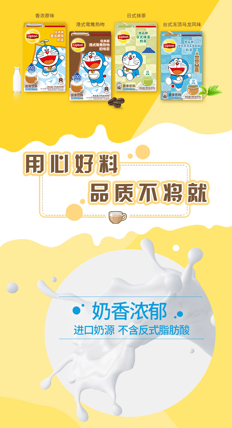 天猫超市59.9元,下单立减10元,可领10元优惠券,实付39.9元到手,含哆啦A梦定制马克杯,联合利华分享款奶茶组合,包含香浓原味、港式鸳鸯、日式抹茶和台湾冻顶乌龙4种口味,每种10条,优选茶源,添加天然茶成分,100%进口奶源,奶香浓郁,不含反式脂肪酸,喝着健康又放心。