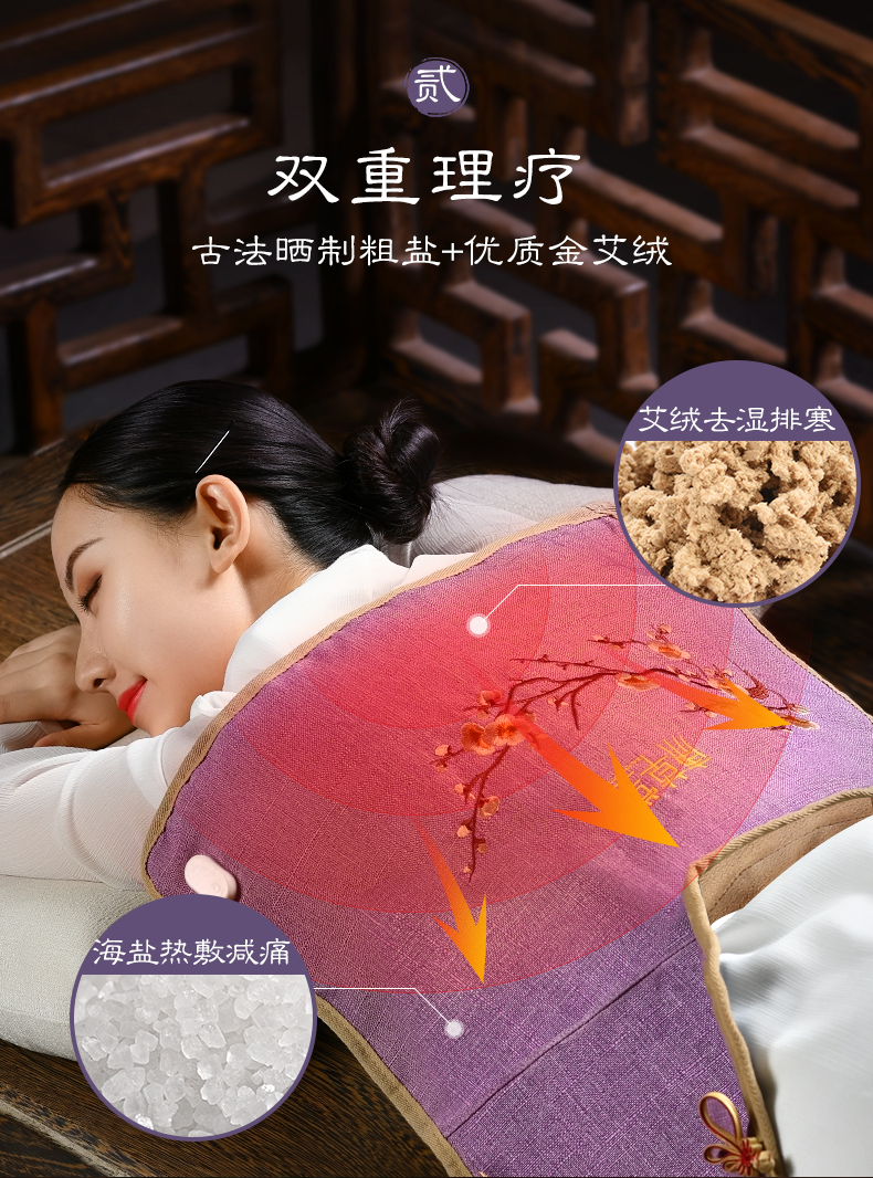 天然海盐热敷理疗包,调经暖宫,腰腿疼通,关节炎症,风湿疼通,祛寒止痛,老寒腿都有显著的功效。可全身热敷,三档控温,帮您解决“亚健康”状态。