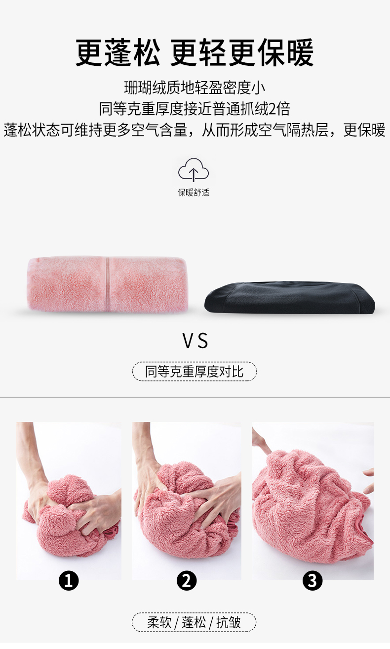 天猫际华旗舰店59元,可领10元优惠券,实付49元到手,单件装此价,男女款均有,采用优质珊瑚绒,绒毛较长,肌肤触感柔滑,质地柔软,舒适贴身,轻盈密度小,同等克重厚度接近普通抓绒的2倍,有效锁住空气,保暖效果更强。