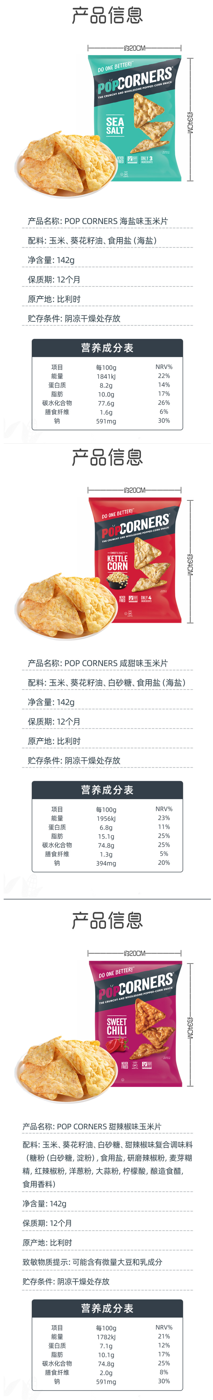 这款Popcorners 香甜非油炸玉米片,比利时进口,选用非转基因玉米为原料,低温烘焙而成非油炸,无其他添加剂成分,口干松脆,好吃更健康。