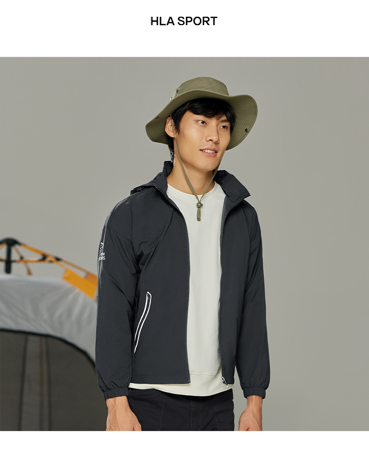 这款海澜之家男连帽运动休闲夹克,是2021年的秋冬新款,使用100%聚酯纤维,摸着柔软,厚度适中,能防风和防小雨。