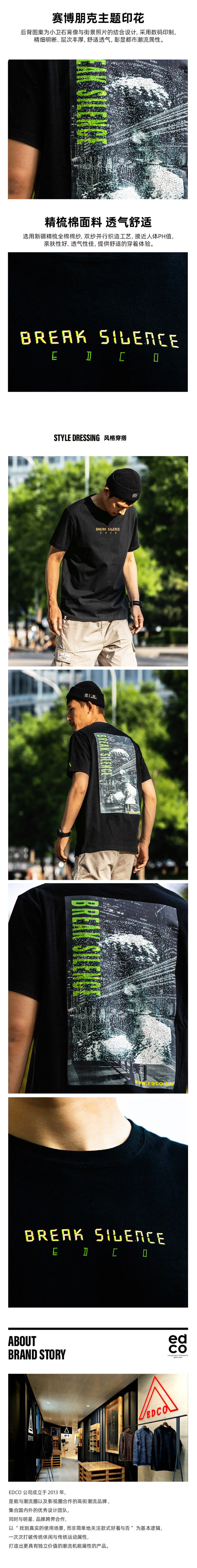 这款艾德克EDCO的赛博朋克图案主题印花T恤,中性款男女都可穿。面料是100%新疆精梳棉,柔软亲肤吸湿。