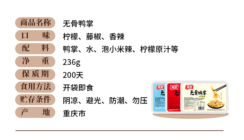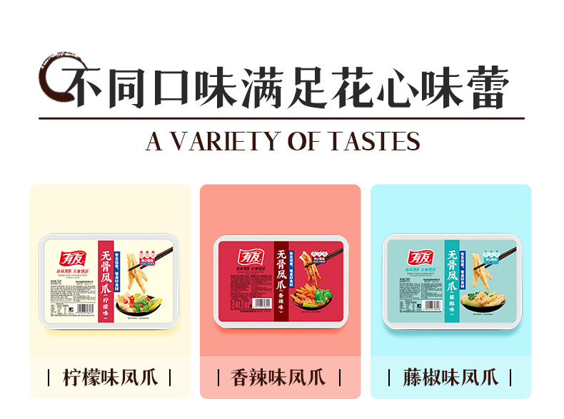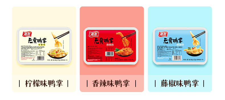 天猫有友食品旗舰店37.9元,拍2件可领25元优惠券,叠加店铺满减,实付36.8元到手,有凤爪和鸭掌可选,每种都有3个口味。