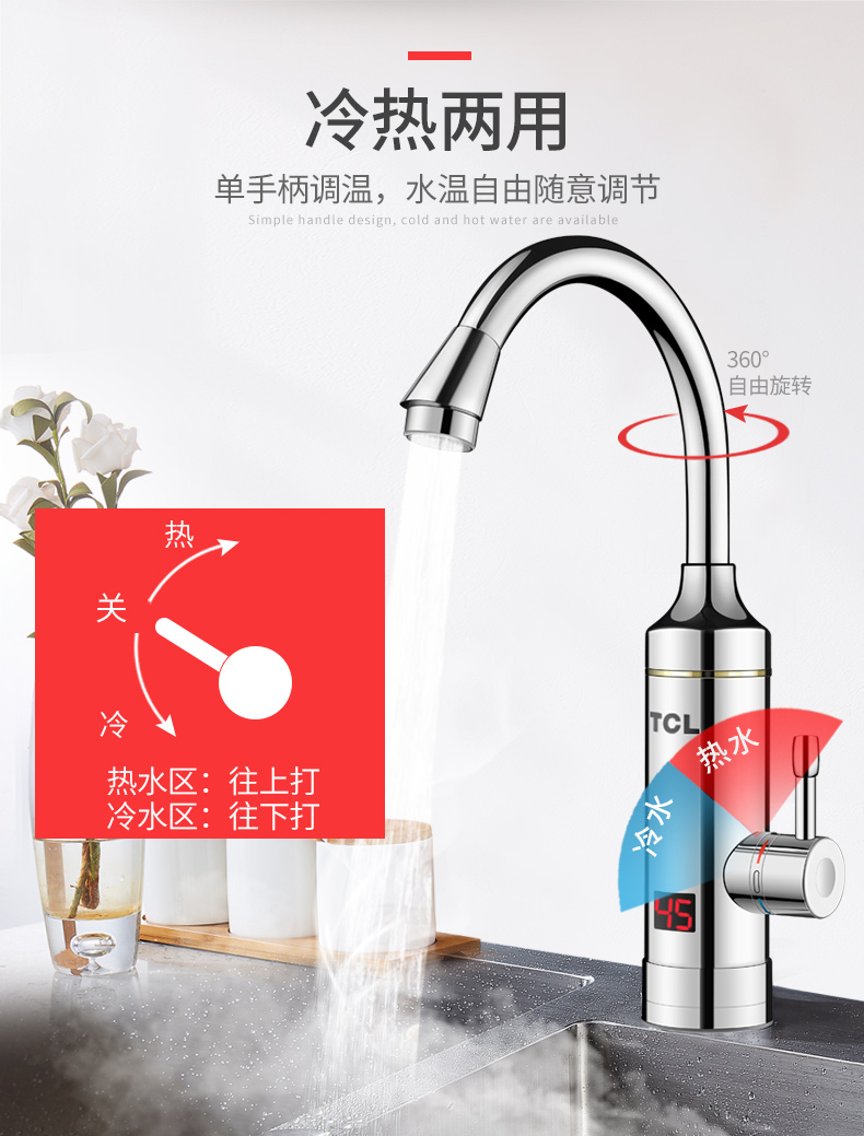 天猫tcl万博同辉专卖店,10月13~15日 黑科技超级秀,¥119元 活动价,-60元优惠券,=59元 到手价,第一款此价。这款即热水龙头,3000w功率,高品质不锈钢加热管,3秒速热,单手柄调温,冷热2用,带有智能数显表,水电隔离,5重安全防护,1.4m左右电源线,可台上台下走线。