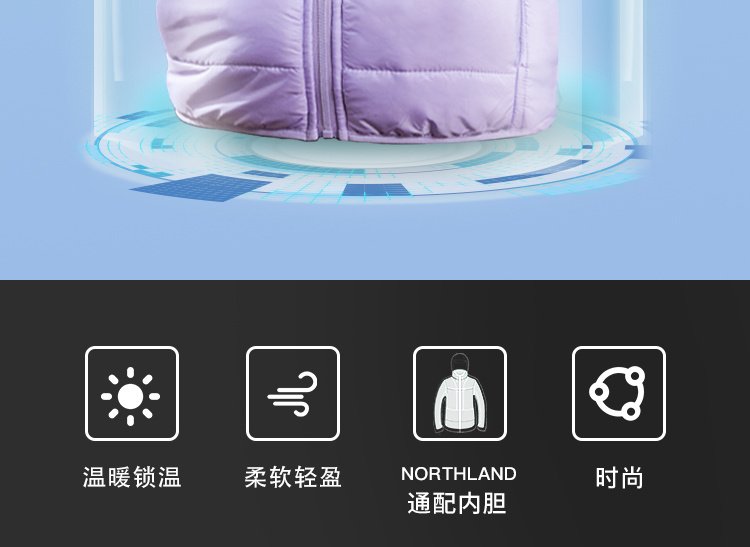 这款Northland 诺诗兰 中大童保暖棉马甲,采用防风高密度面料,同时采用顺滑拉链更保暖,肩部使用松紧包边锁温设计,隐形口袋随身携带物品更方便;夹棉材质,保暖柔软;通配内胆设计,可作为内胆搭配NORTHLAND三穿夹克外壳使用,季节变换随心搭配;