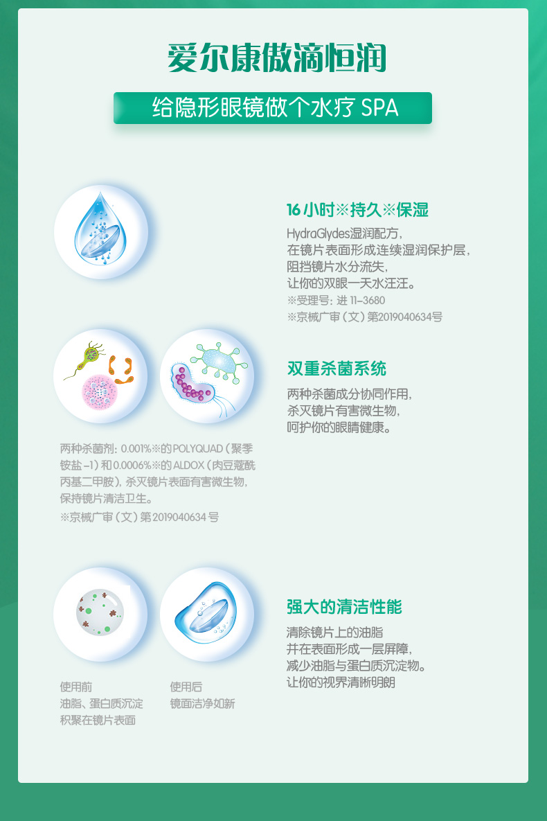 爱尔康公司是全球最大的眼科药品与医疗器械专业公司,主要经营眼部医药品、眼科手术设备装置、隐形眼镜相关护理产品的研发、生产和营销。傲滴是爱尔康旗下主打的护理液系列,目前有傲滴、傲滴乐明、傲滴恒润三款。傲滴是爱尔康的第一代隐形眼镜护理液产品,相对于其他产品而言,傲滴护理液的舒适性特别好,隐形眼镜镜片浸泡一晚后再用感觉很舒适;傲滴乐明特有的TearGlyde®专利系统可重新润泽隐形眼镜表面,使其表面形成薄保湿层,从而保持隐形眼镜全天候湿润。三重清洁配方杀菌清洁,佩戴舒适。