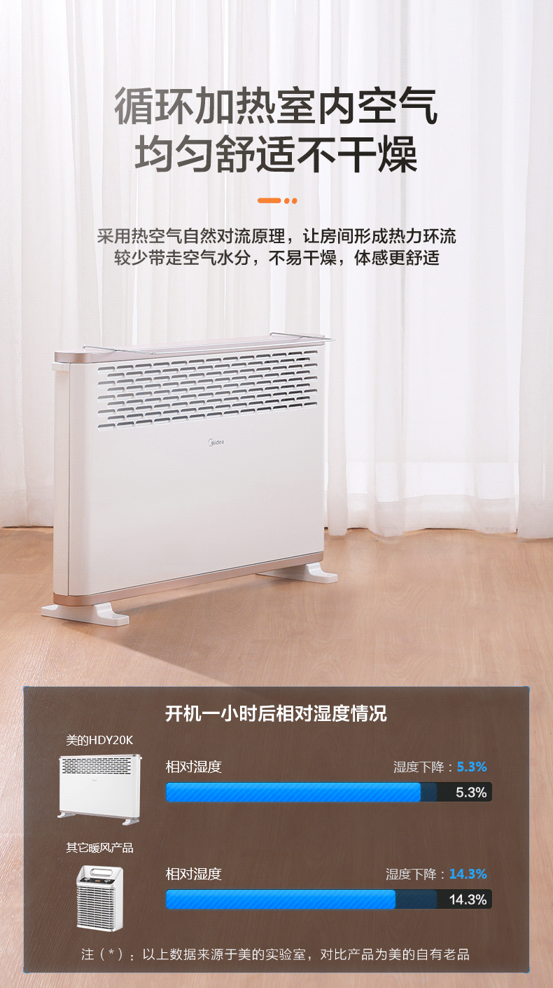 天猫美的好客专卖店259元,可领50元优惠券,实付209元到手,美的对衡式取暖器,5秒速热,散热口温度上升到80度仅需72秒,对流式取暖,安静无风感,循环加热室内空气,均匀舒适不干燥。