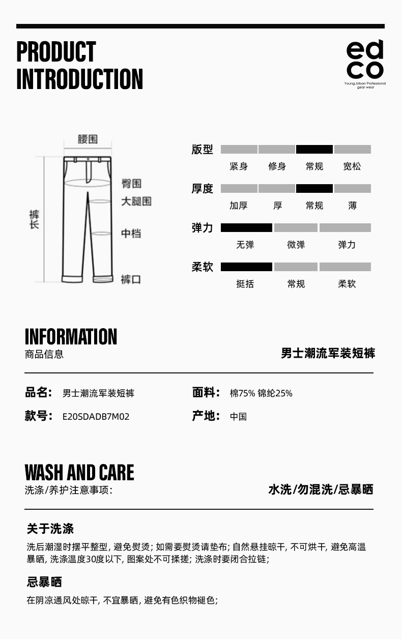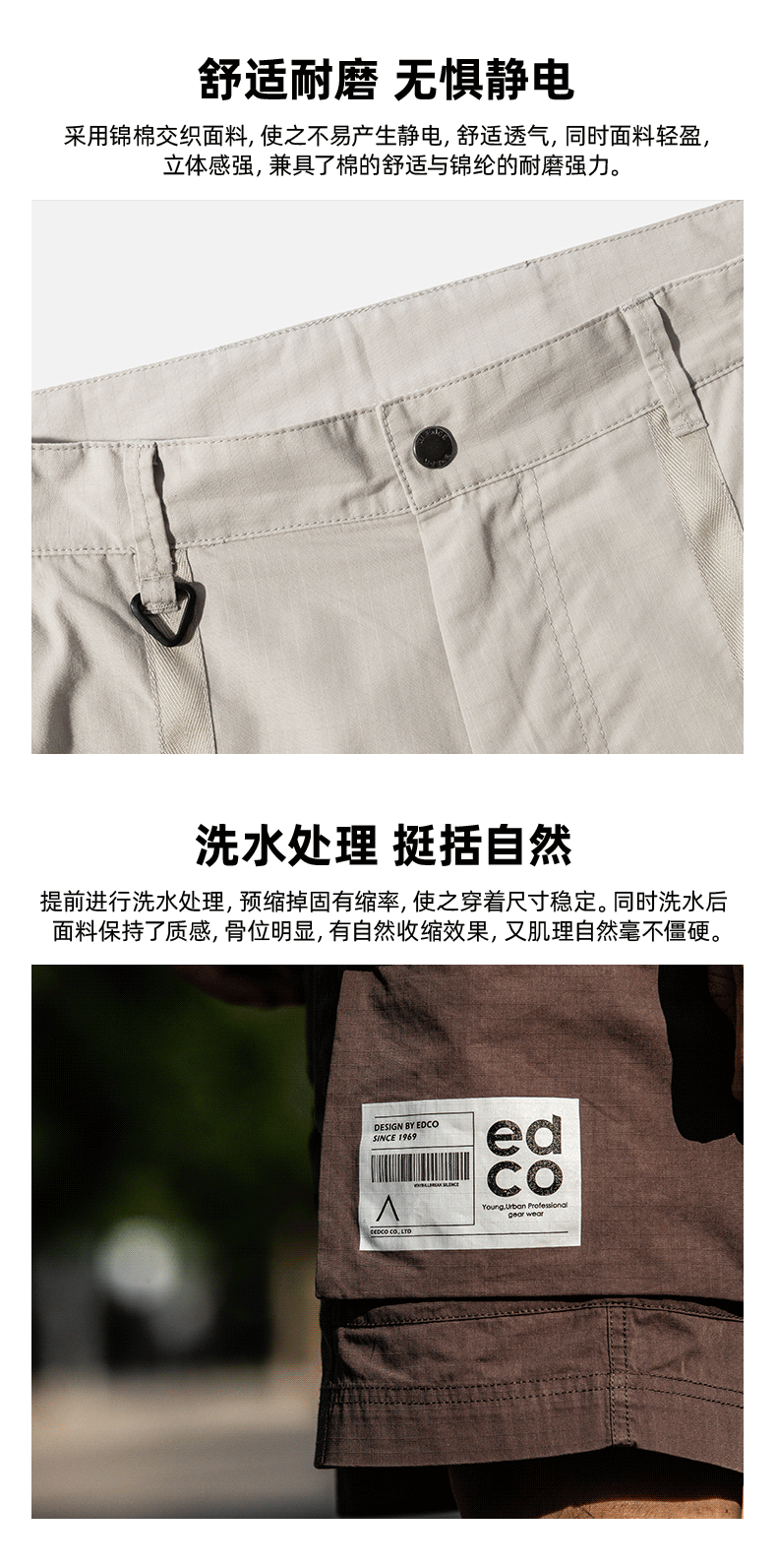 这款艾德克EDCO男透气速干短裤,是五分裤长短,使用75%棉+25%速干尼龙混纺而成,贴身舒适、不易产生静电,同时面料轻盈,立体感强,兼具了棉的舒适与锦纶的耐磨强力。