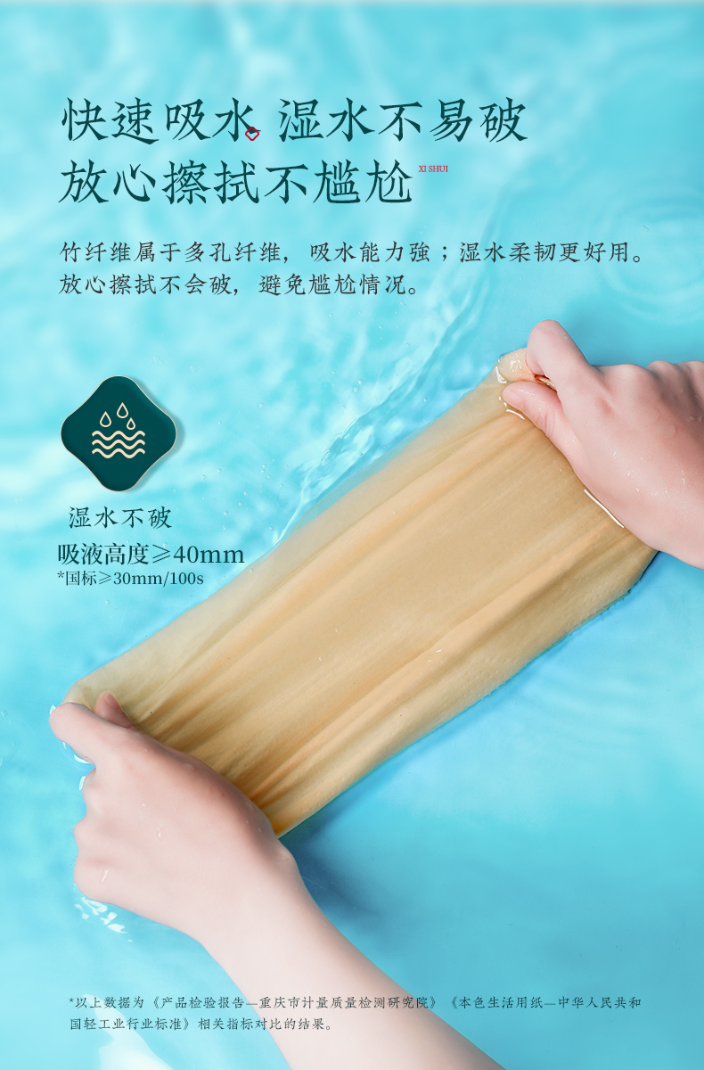 这款抽纸无漂白,无有害添加,抽纸可直接接触食品,内部添加天然提取的竹锟精华,抑菌率高达99%,具有多孔纤维,可以瞬间吸收和蒸发水分,湿水后韧性更强,擦拭后不易松散,干湿两用,大小适中。