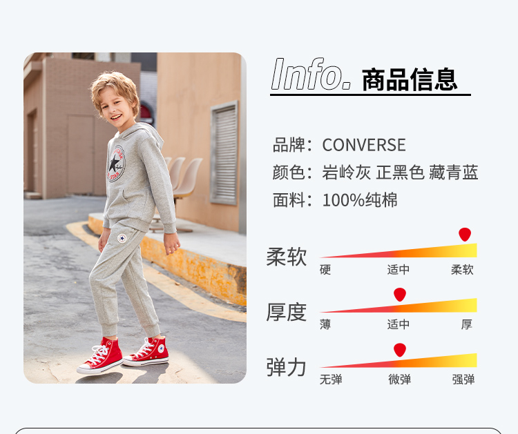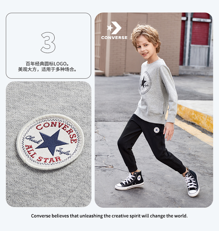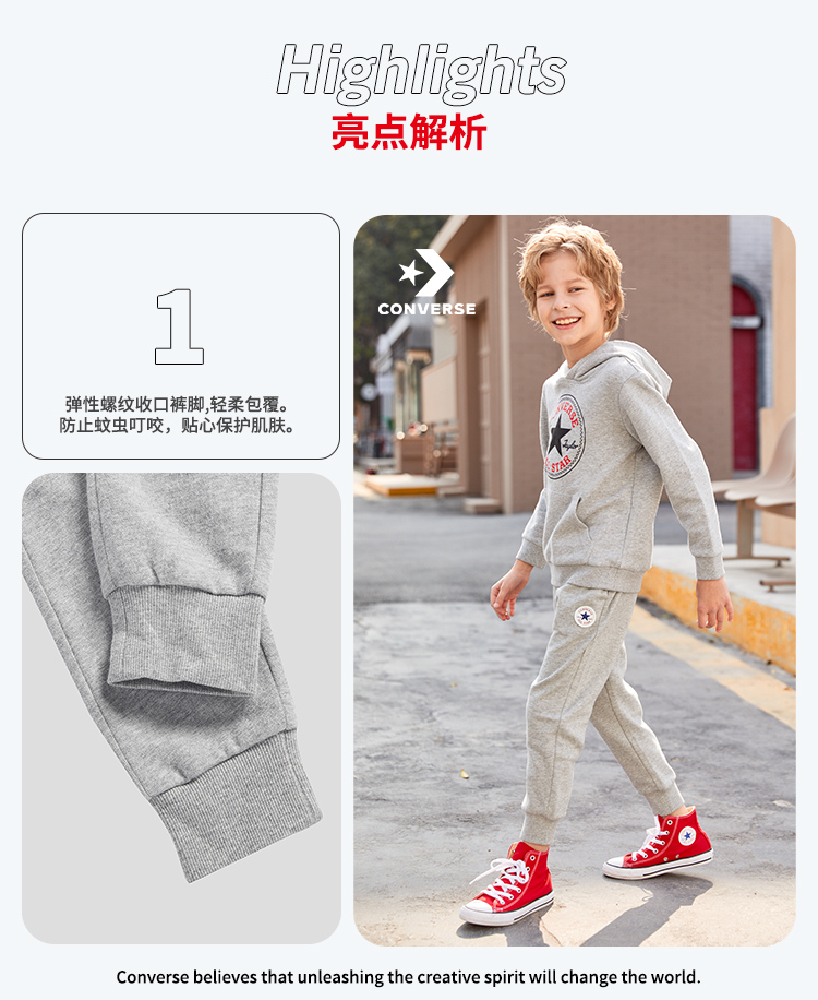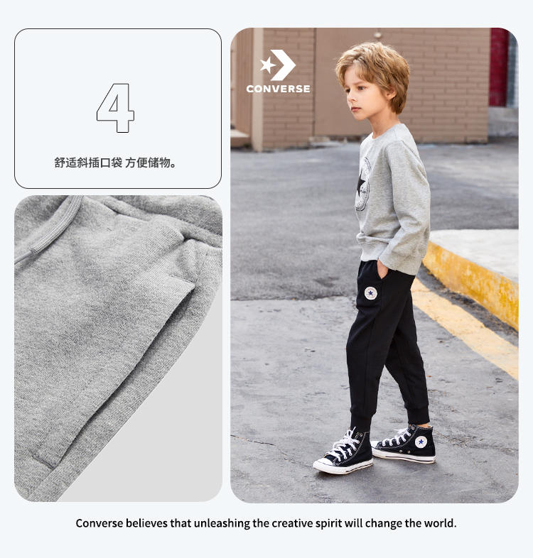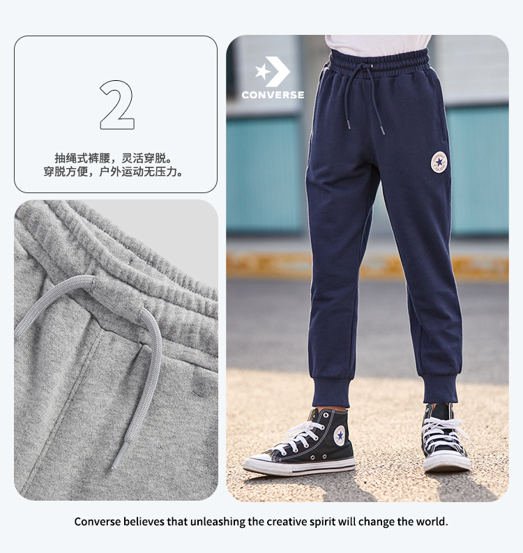 天猫converse童鞋旗舰店159元,下单立减55.65元,可领20元优惠券,实付83.35元到手,有断码,最大到160cm,100%纯棉材质,针织透气舒适,罗纹裤腰,松紧可随心调节,经典logo点缀,彰显个性,两侧运动斜口袋,简洁利落。裤脚束口设计,保暖防风。