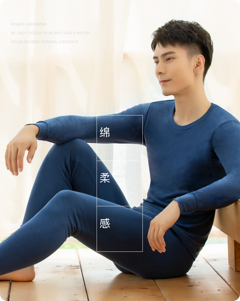 这款秋衣套装,采用100%纯棉40支纺纱面料,180克重薄厚适中,柔软亲肤,不掉毛,手感细腻,透气有弹性,不易起球,活性印染,一片式剪裁,3D人体工程学设计,穿着舒适不易变形,双包滚边圆V领,贴肤罗纹袖口及脚口,罗纹裤腰,无钮扣门襟。