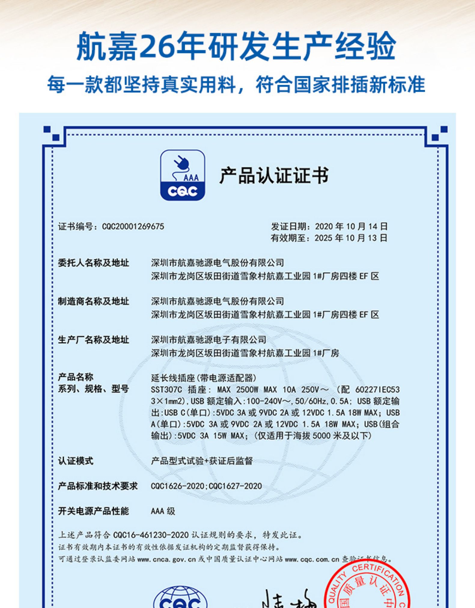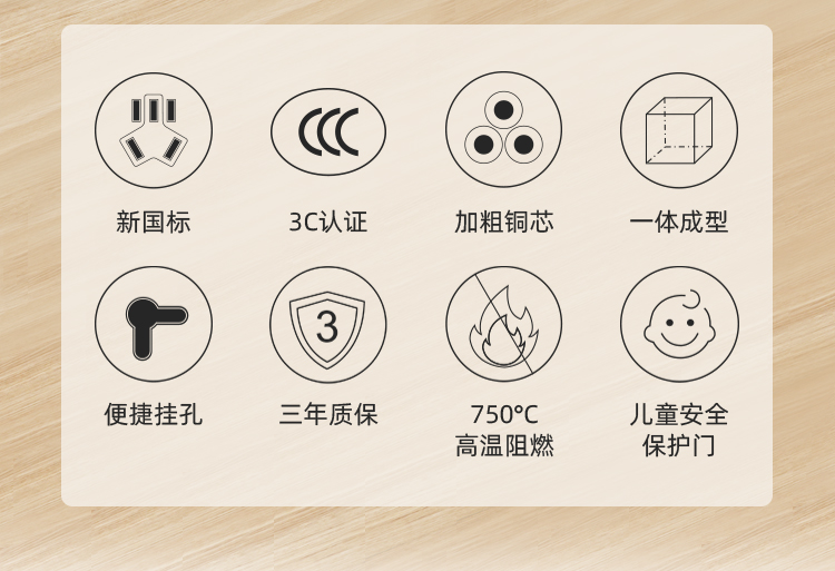 航嘉的质量不错,这个价入超值。这款排插采用一体铜芯,PC阻燃塑材料料原料,防虚焊,低温升,额定电压250V,额定功率2500W,1.8米的线长也基本能满足所需,终身质保,额定电流:10A MAX,额定功率:2500W MAX。