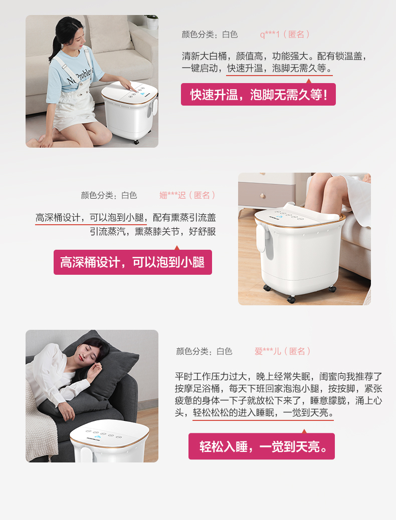 天猫创维伊嘉专卖店149元,可领110元优惠券,实付39元到手,第一款此价,淡季不要钱系列,这可是创维十大家电品牌排第四,高配款卖出了低配的价格。带红光加热功能,3D全息足底按摩,双重喷淋冲浪,热循环除臭抑菌,10组按摩滚轮,2组指压按摩,熏蒸药盒设计,PTC加热技术,水电分离超安全