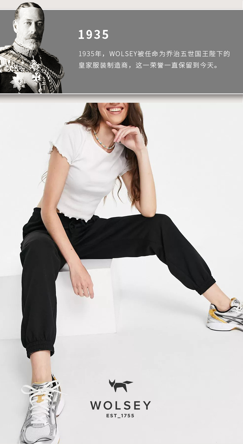1755年,WOLSEY诞生于高尔夫运动的发源地英国,距今已有260多年的历史了。1755年,Henry Wood建立了自己的公司,为WOLSEY两百多年的辉煌发展奠定了起点。在英国工业发展鼎盛期的维多利亚女王时代,体育、休闲、娱乐日益盛行。WOLSEY正是在这一时期崛起,成为体育、时尚休闲类的服装著名品牌。特别是,由于当时高尔夫运动在大众化的体育休闲活动中最为受到关注和喜爱,WOLSEY开始涉足高尔夫系列服装的生产,并将这一传统领域延续至今。1935年和1959年,WOLSEY分别被乔治五世、二世授予“英国王室特供用品”的资格。1974年,狐狸的形象作为WOLSEY品牌高尔夫休闲类产品的标志终于在英国最好的狩狐猎场Leicester市诞生。今天,WOLSEY狐狸的标志已被全世界广泛认知。