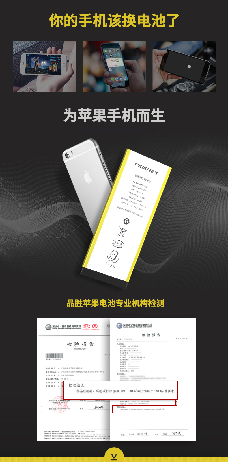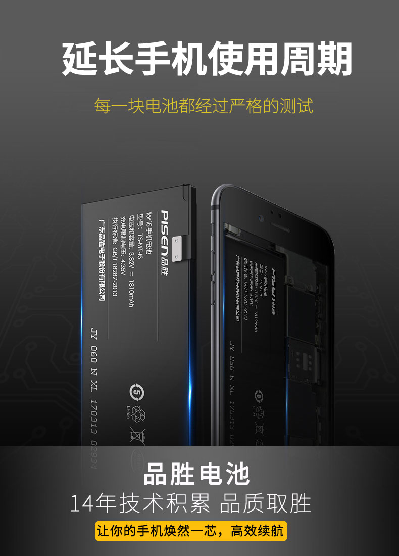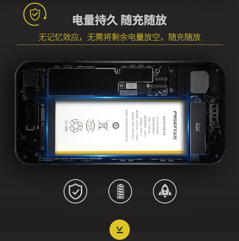 国内做手机电池品牌的行内人都知道,华严苛、品胜、飞毛腿都是质量比较稳定的品牌。这款品胜 iPhone电池,采用聚合物锂离子电芯,胶态电解质,平稳放电,无记忆效应,无需将剩余电量放空,随充随放。