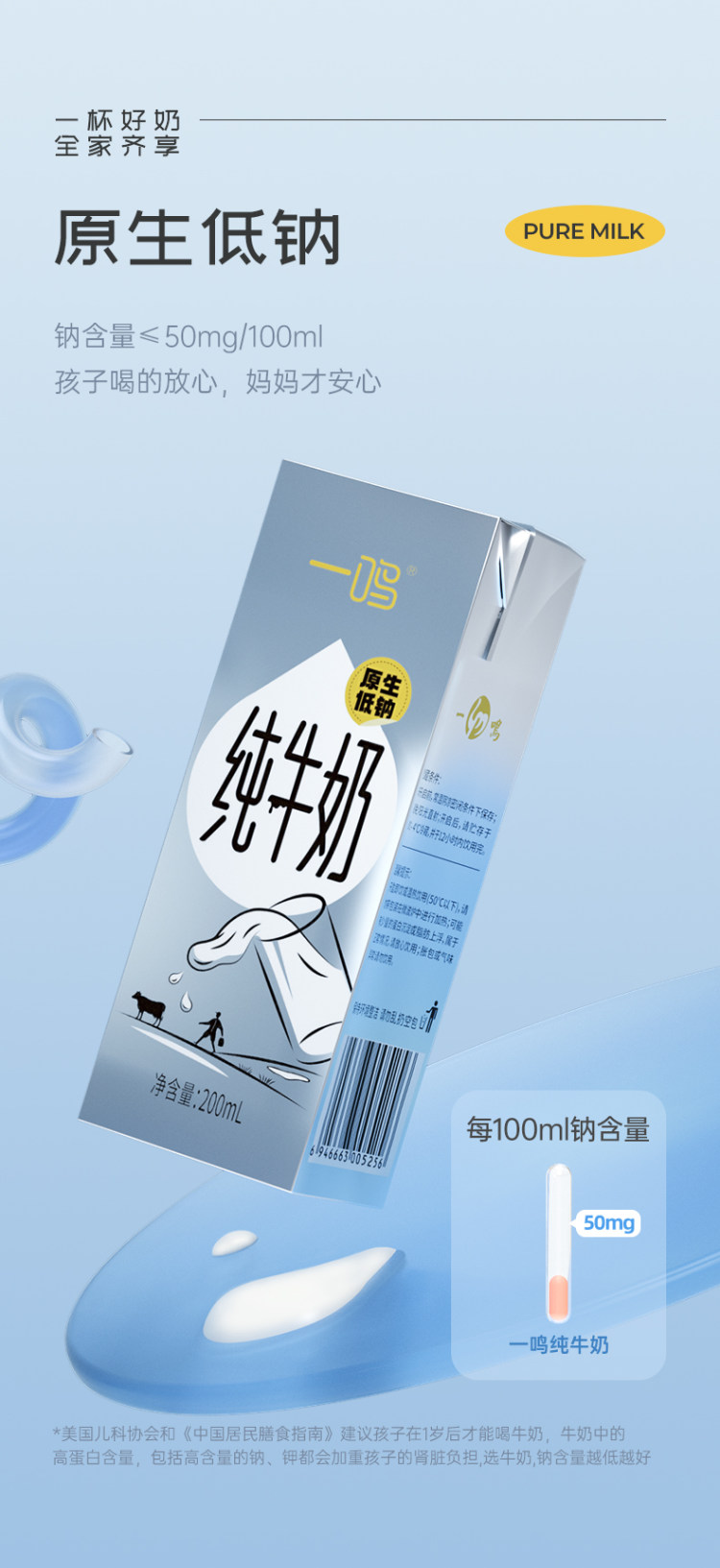 一鸣纯牛奶!10万级乳制品GMP认证生产车间,配料表里只有生牛乳,入口是真实的清甜牛奶味,超好喝,还是低钠的,减少肾脏负担领券链接点此