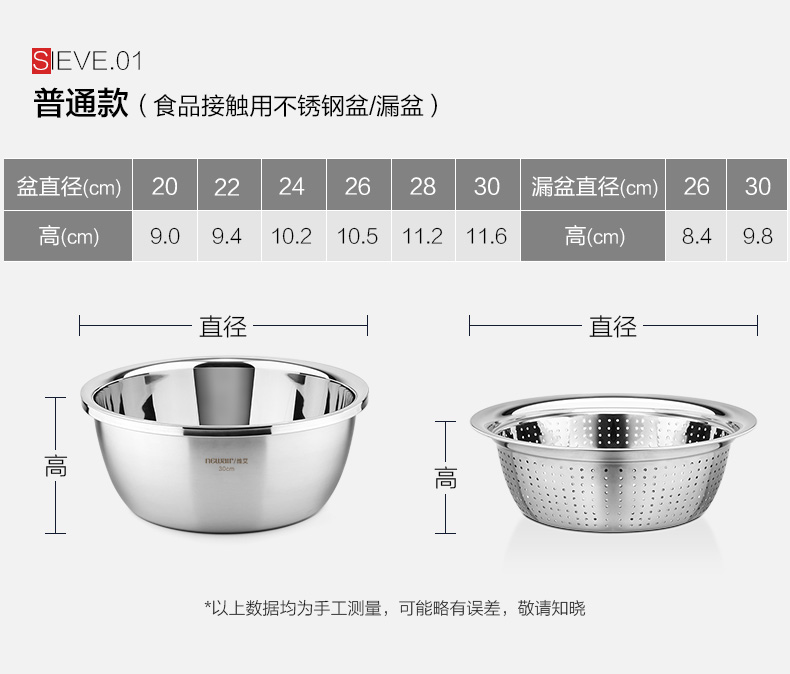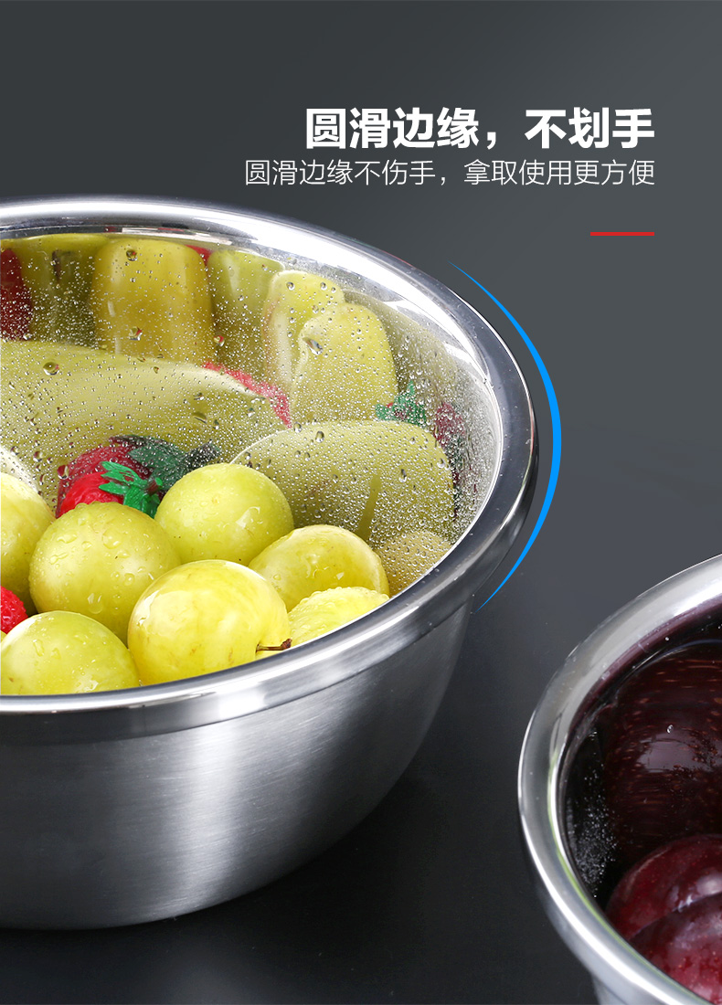 食品接触用不锈钢加厚制成,厚度均匀,抗压强度大,耐腐蚀,不生锈,卫生健康;圆润边角,光滑不刮手,特殊的收边工艺,完全不会有割手的情况出现。