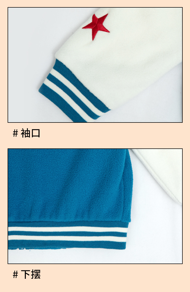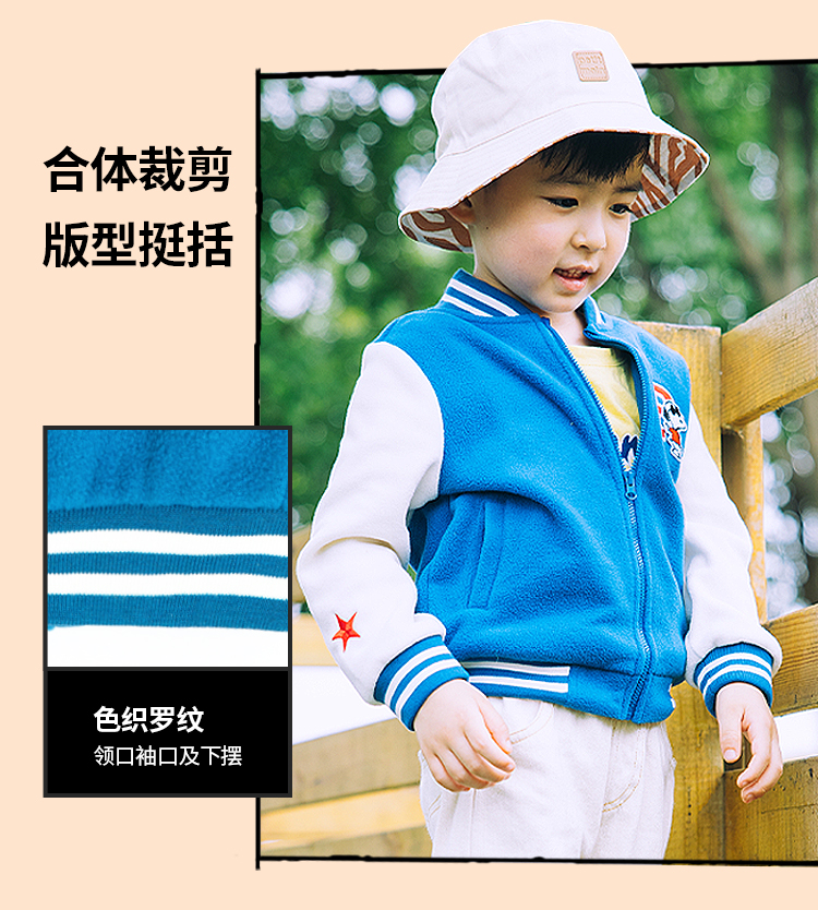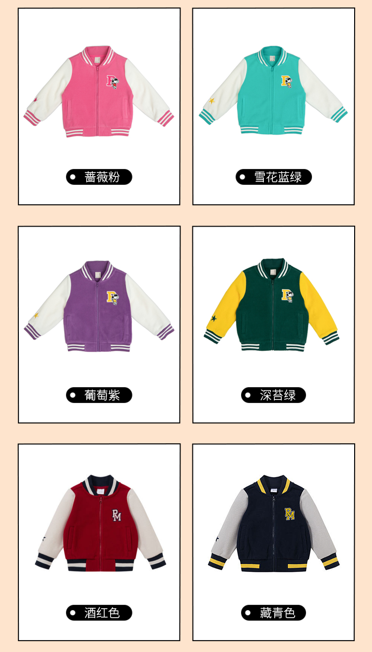这款petit main 摇粒绒棒球衫,婴幼儿A类品质,触感温和柔顺,超COOL棒球领,高颜值日系复古撞色,潮流时尚,胸口3D字母刺绣,时尚小元素点缀穿出范儿;袖口横机罗纹收口,防风控温,随心所欲,搭出新花样。