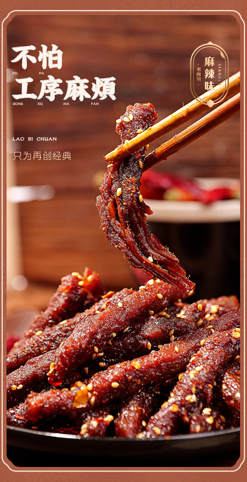 • 中华老字号 老四川 麻辣牛肉干 60g*6袋 纯牛肉不含大豆蛋白