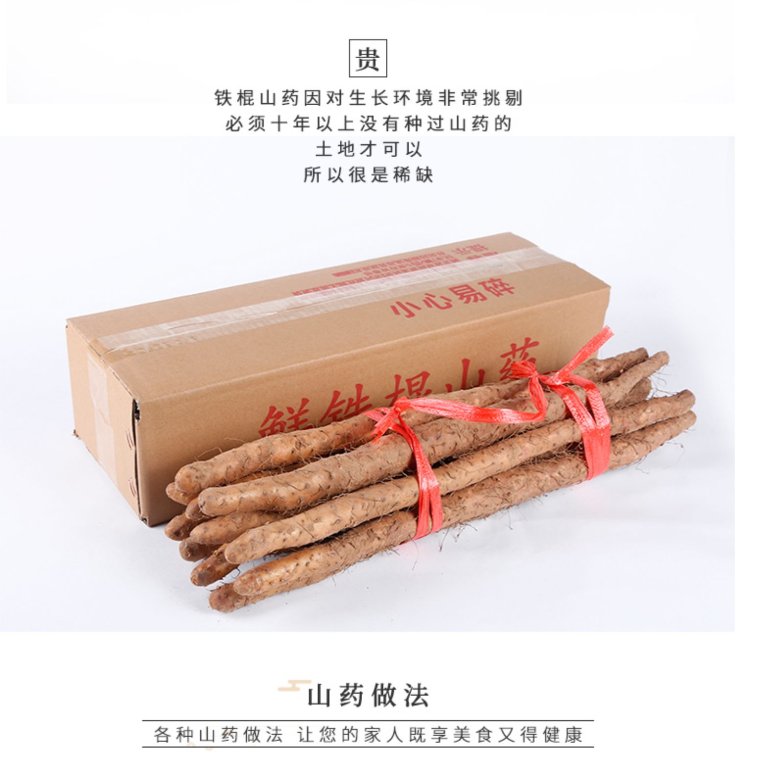 垆土铁棍山药,含有淀粉酶、粘液蛋白、多酚氧化酶、大量的蛋白、维生素及微量元素等物质 ,有健脾益胃、助消化,滋肾益精,益肺止咳、降低血糖、阻止血脂在血管壁的沉淀,预防心血疾病多种保健功效。