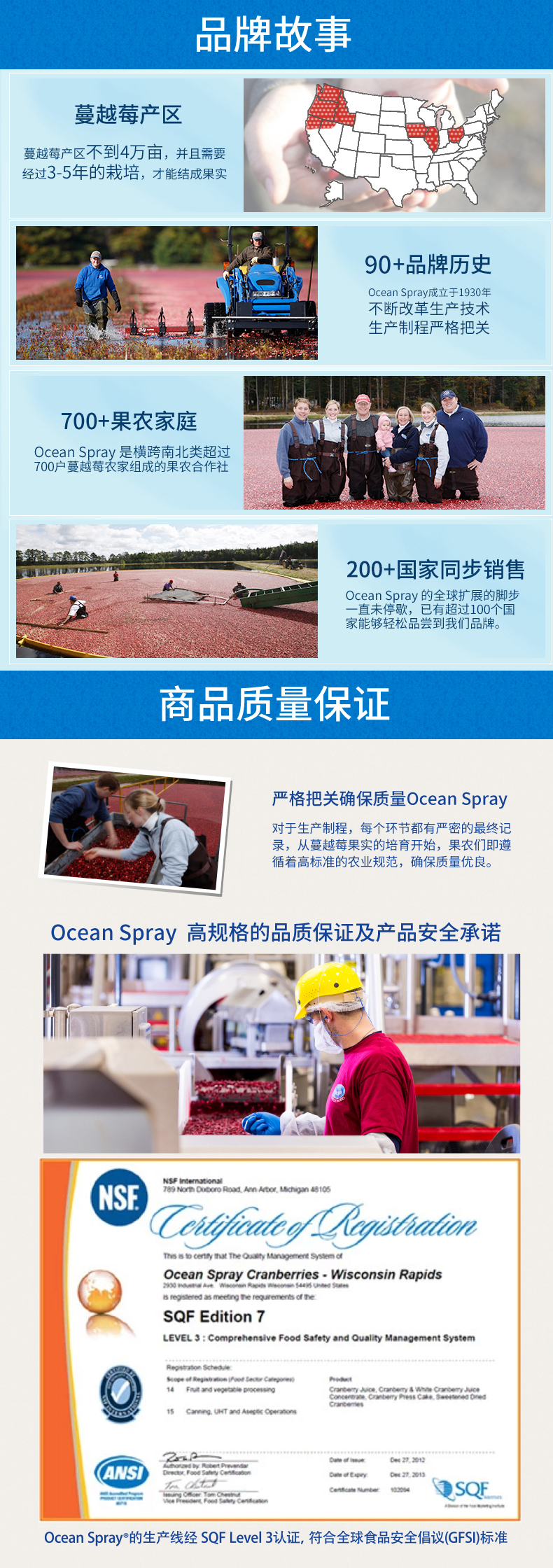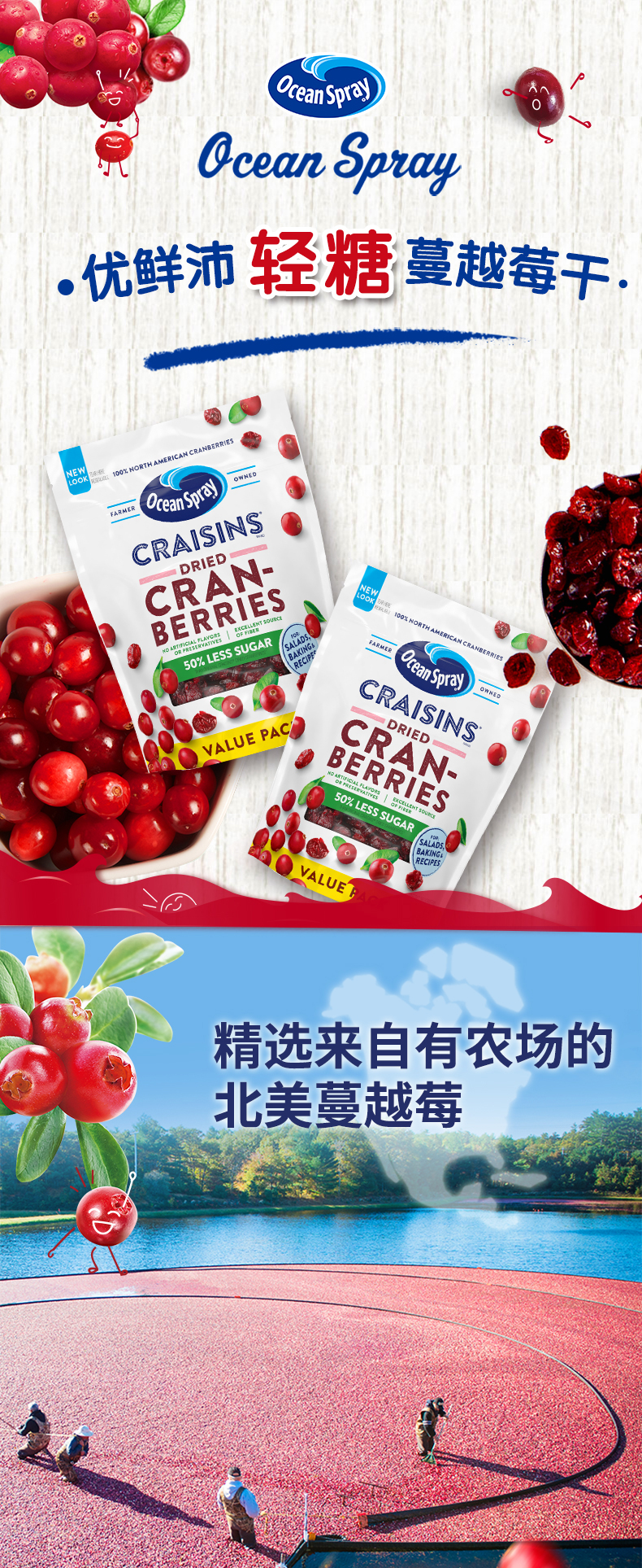 OceanSpray(优鲜沛)是世界最大的蔓越莓制品品牌,全球一半以上的蔓越莓经由OceanSpray加工后在全球近百个国家出售。蔓越莓被誉为预防泌尿道感染的天然保健品,其含有的黄酮醇、A型原花青素、多酚等物质除了能够消除自由基抗氧化剂外,还能有效的防止抗药性细菌粘附在内衬组织细胞上,防止病菌进入盆腔,帮助预防输卵管系统发炎和改善泌尿系统的健康,组织病菌引起的尿道炎,有助于盆腔健康。