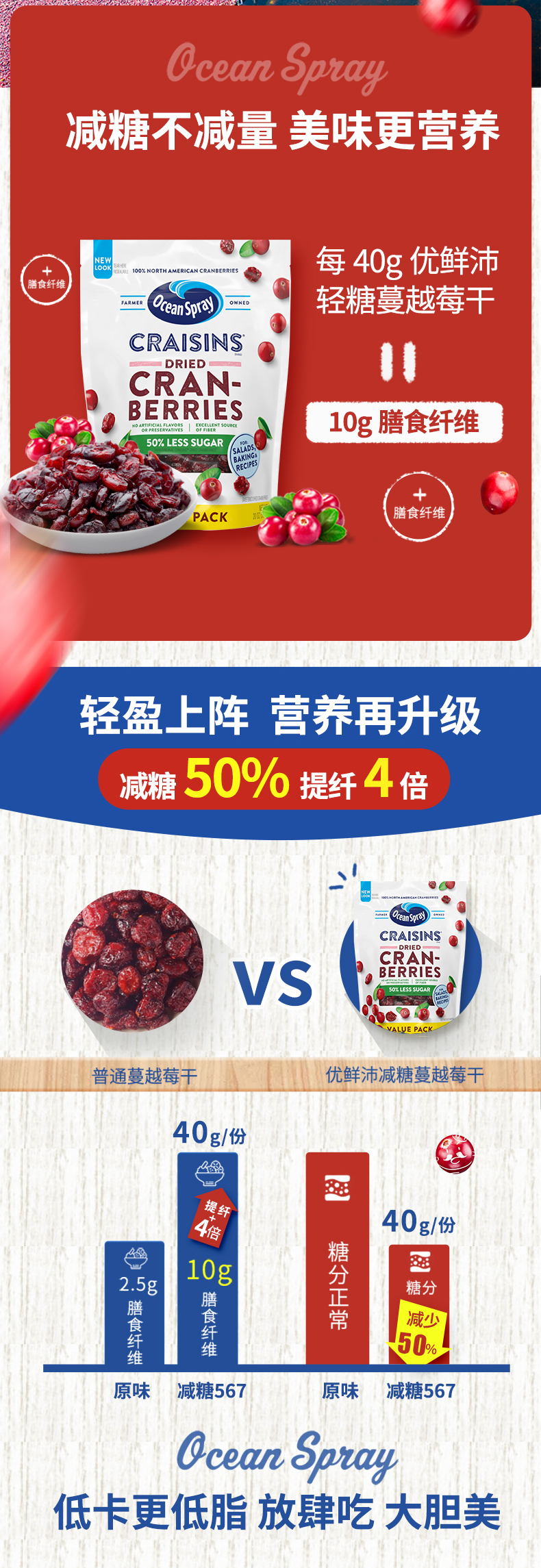 天猫国际进口超市59元,下单立减14.75元,可领10元优惠券,实付34.25元到手,规格为蔓越莓果干相比之前常见款减糖50%,对于介意糖分含量的朋友尤为适合;此外还添加了可溶性玉米纤维,使得膳食纤维含量达到了之前的3倍之多。