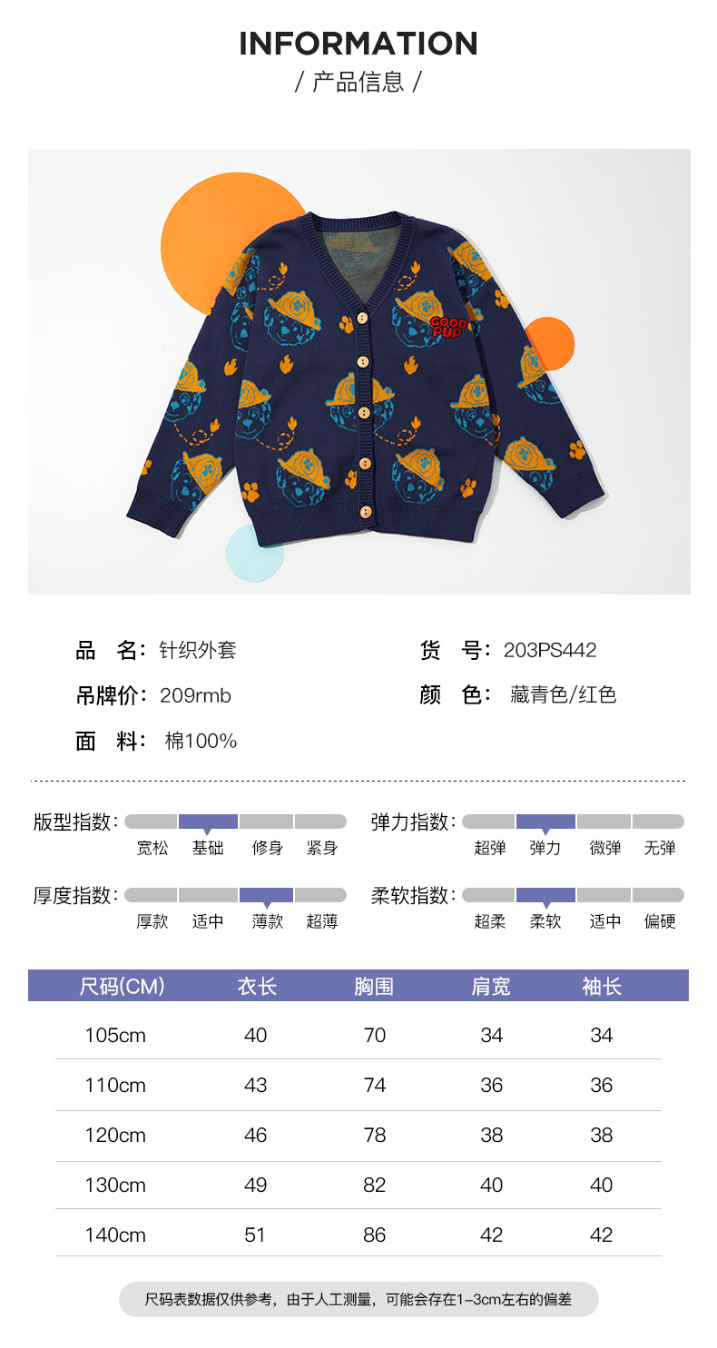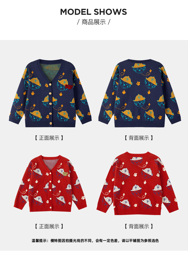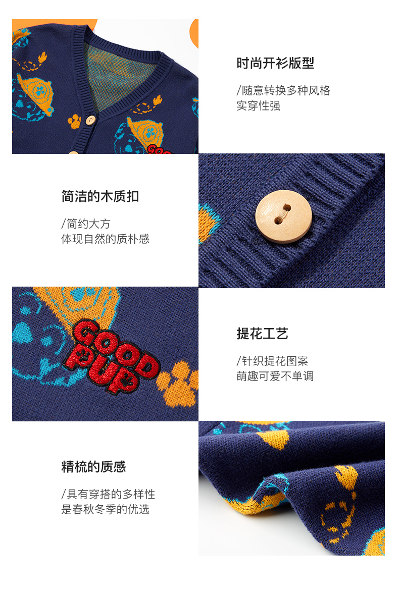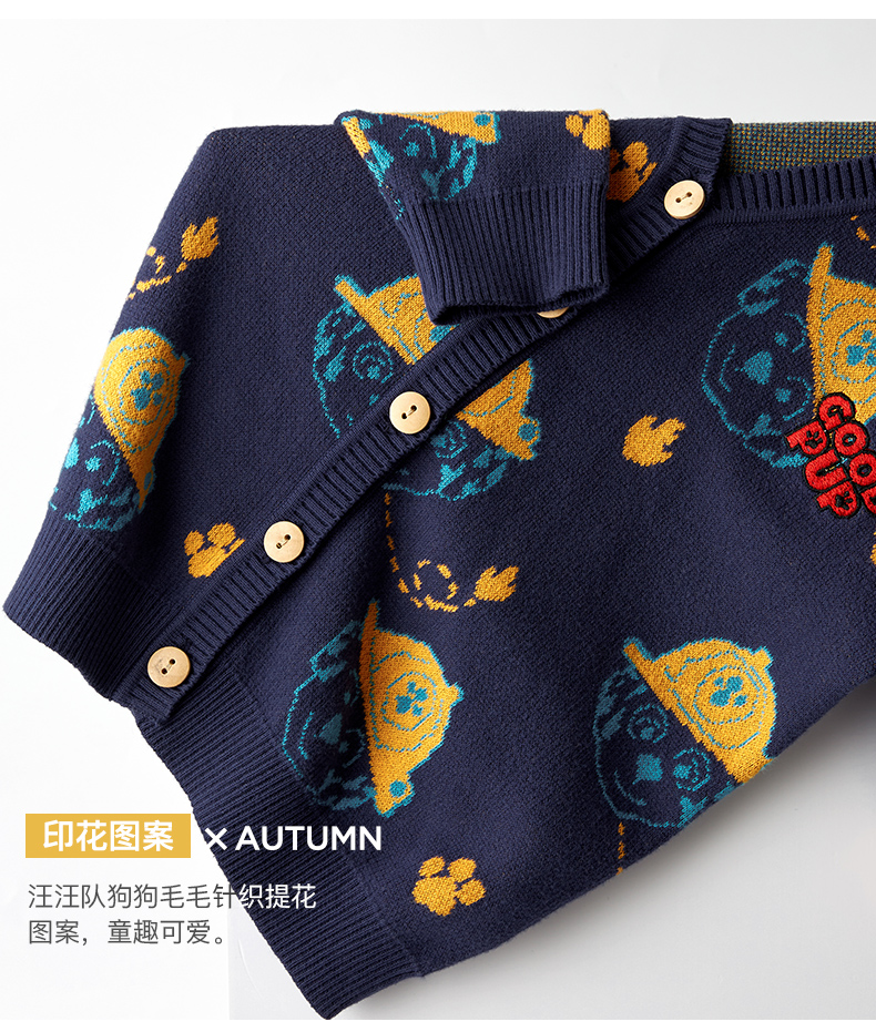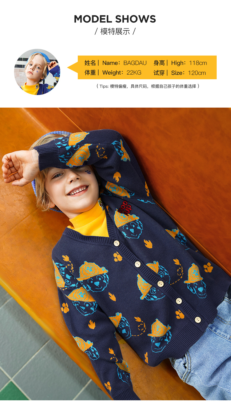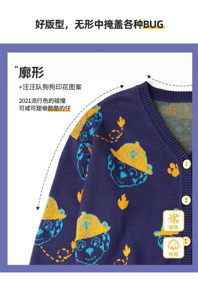 这款Paw Patrol 汪汪队立大功 儿童2021秋季新款针织开衫外套, 优质面料,有弹柔软,亲肤透气;中开纽扣设计,简约舒适,穿脱方便;袖口、下摆,螺纹收口,松紧适中,防风保暖;图案胶浆印花,光滑平整,色彩自然纯正,结实牢固,不易脱落;