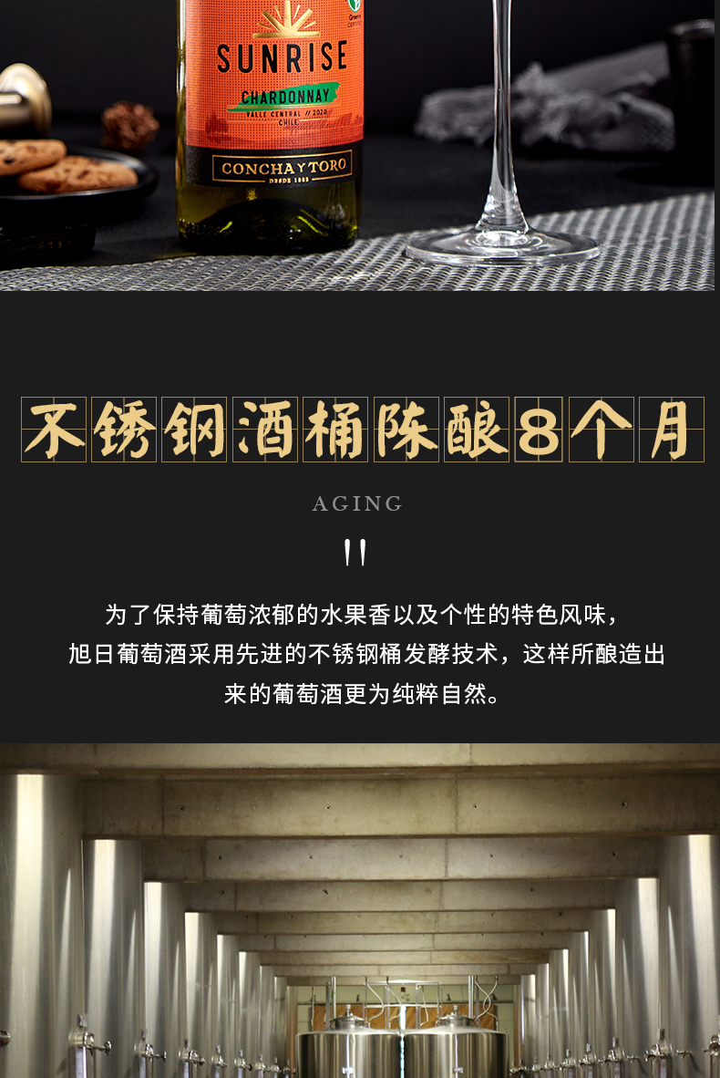 干露酒厂创办于1883年,旗下的旭日系列为浅龄葡萄酒,在不锈钢桶中发酵以保持原汁原味的水果味,在全球的餐桌上以一种年轻且清新的姿态出现。